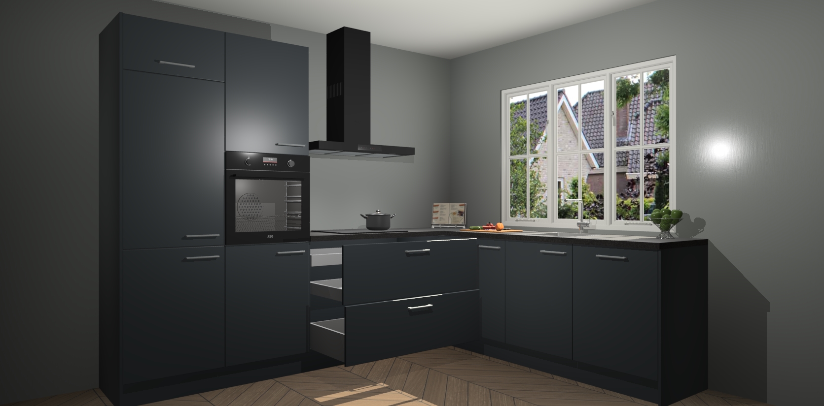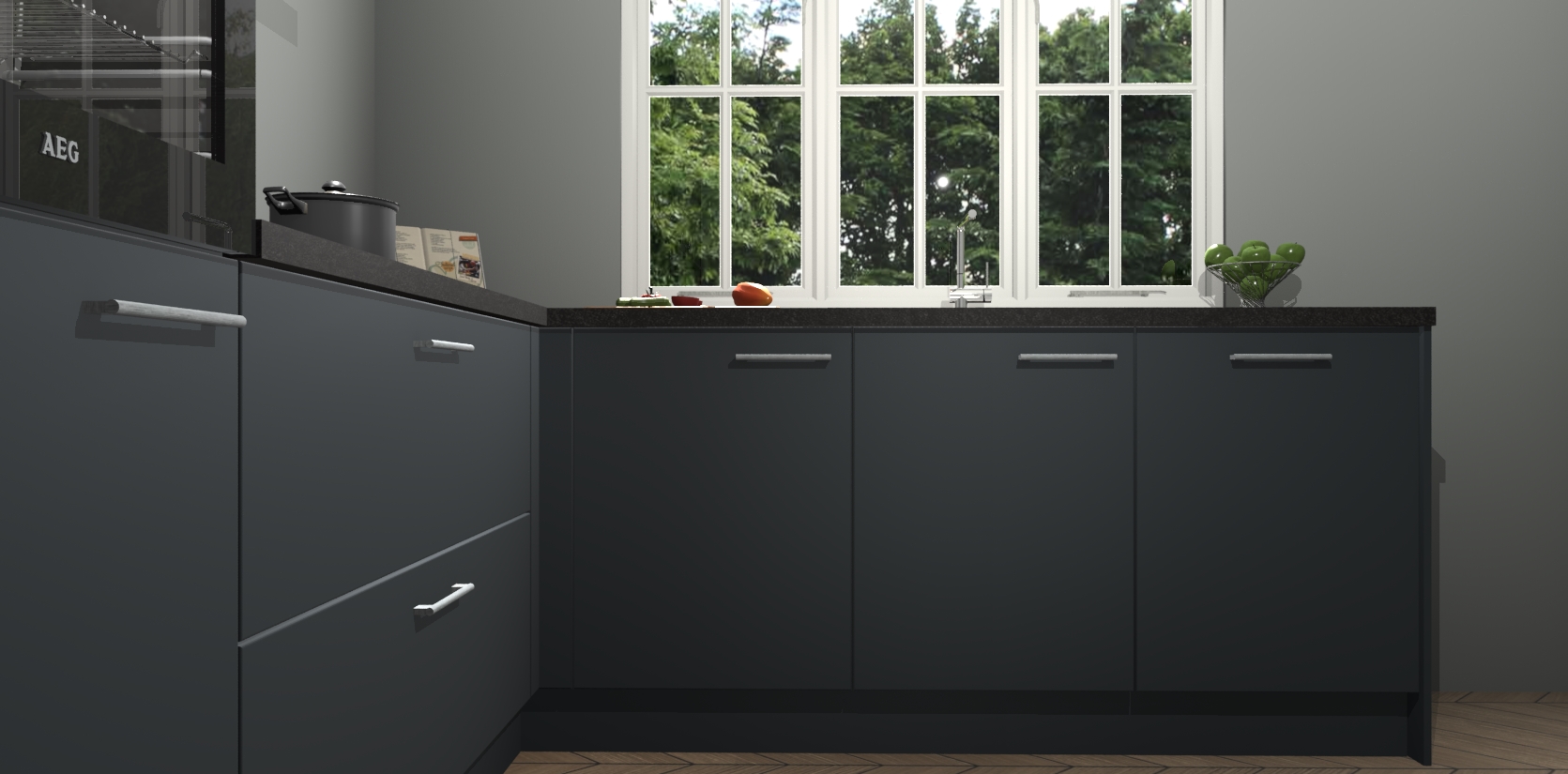 Inclusief plinten, stelpoten en werkblad