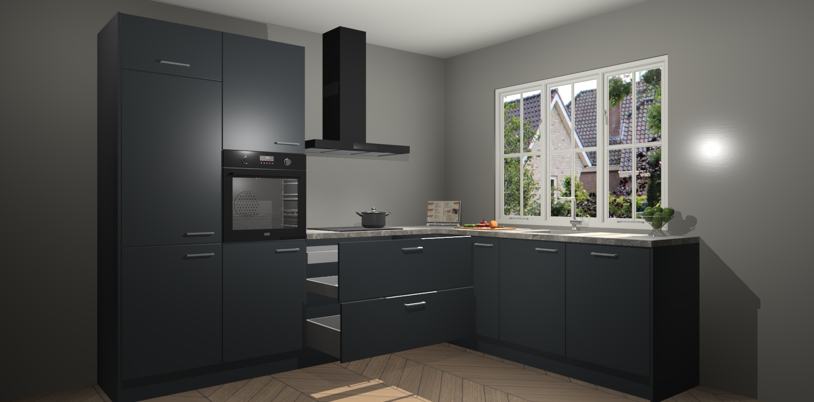 Heeft u genoeg van dezelfde keukenontwerpen die de markt overspoelen? Dan is de Onyxgrijze keuken Kazan de juiste keuze voor u! Deze prachtige hoekkeuken heeft een modern en tijdloos design dat een elegant tintje geeft aan uw ruimte.