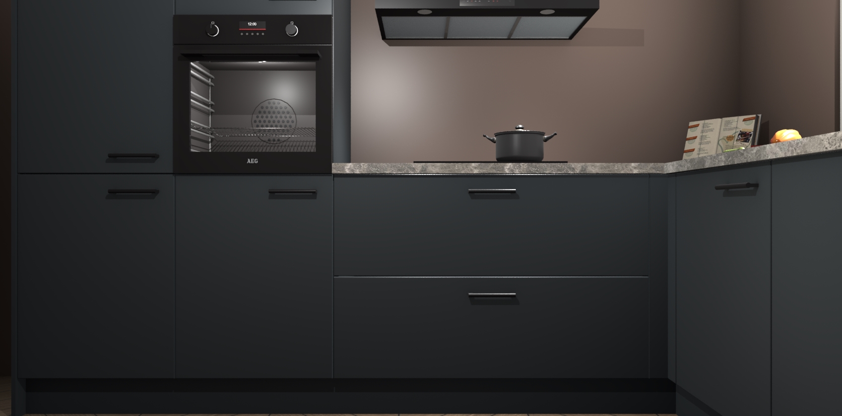 Inclusief plinten, stelpoten en werkblad