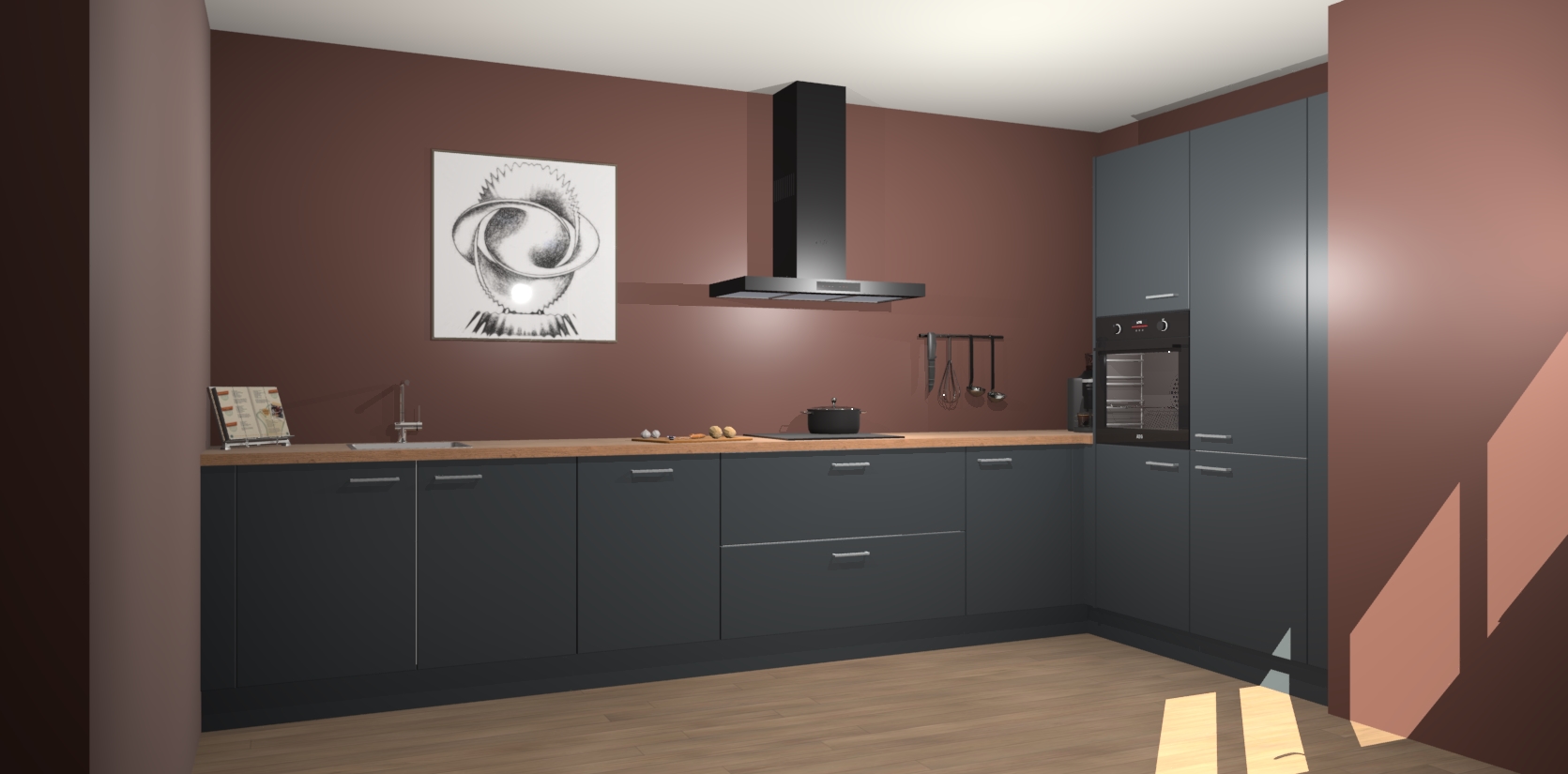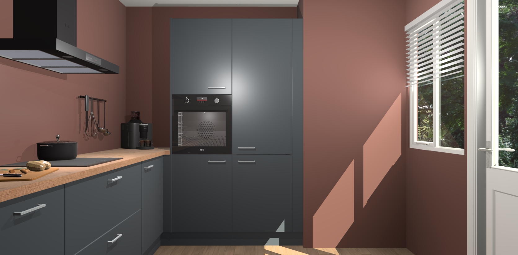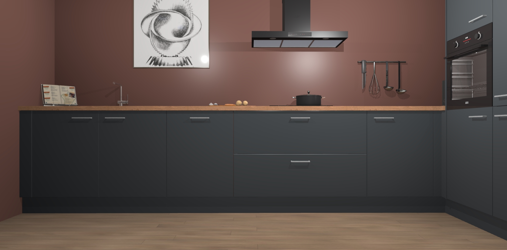 Welkom bij de Onyxgrijze keuken Khao Lak. Deze prachtige keuken zal de komende jaren het middelpunt van de belangstelling in uw huis zijn. Uitgerust met vijf inbouwapparaten komt u nooit kookgereedschap tekort. Bovendien geeft de warme houtlook elke ruimte een uitnodigende en tijdloze uitstraling.