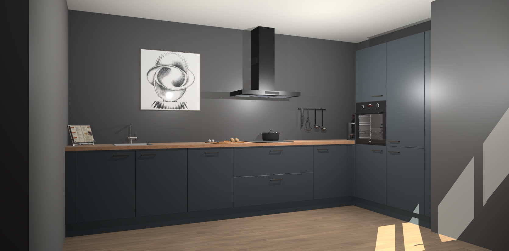 Welkom bij de Onyxgrijze keuken Khao Lak. Deze prachtige keuken zal de komende jaren het middelpunt van de belangstelling in uw huis zijn. Uitgerust met vijf inbouwapparaten komt u nooit kookgereedschap tekort. Bovendien geeft de warme houtlook elke ruimte een uitnodigende en tijdloze uitstraling.