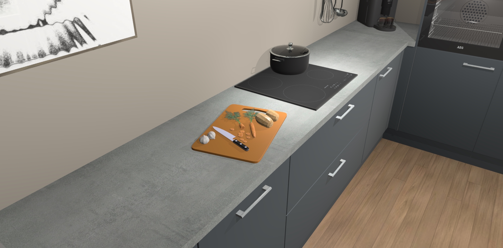 Inclusief plinten, stelpoten en werkblad