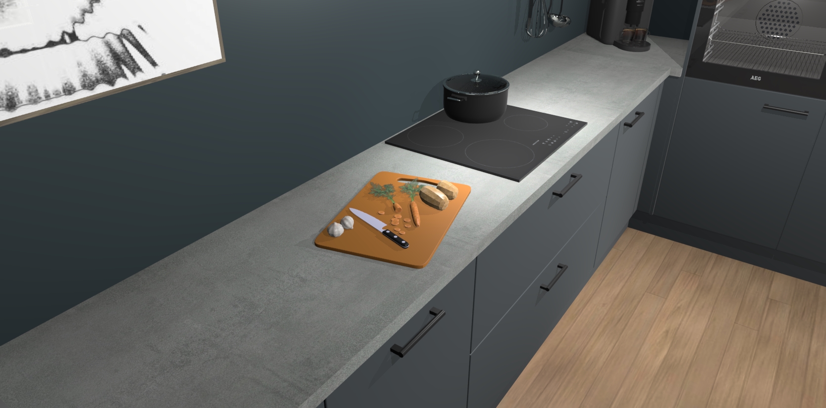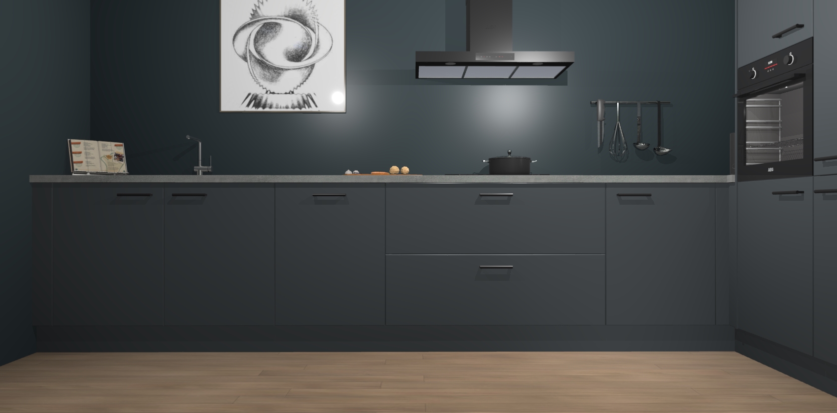 Welkom bij de Onyxgrijze keuken Khao Lak. Deze prachtige keuken zal de komende jaren het middelpunt van de belangstelling in uw huis zijn. Uitgerust met vijf inbouwapparaten komt u nooit kookgereedschap tekort. Bovendien geeft de warme houtlook elke ruimte een uitnodigende en tijdloze uitstraling.