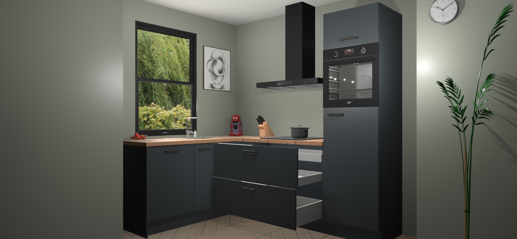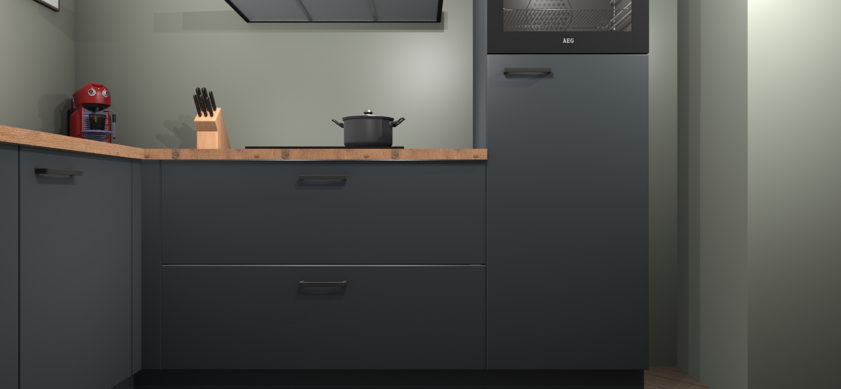 Inclusief plinten, stelpoten en werkblad