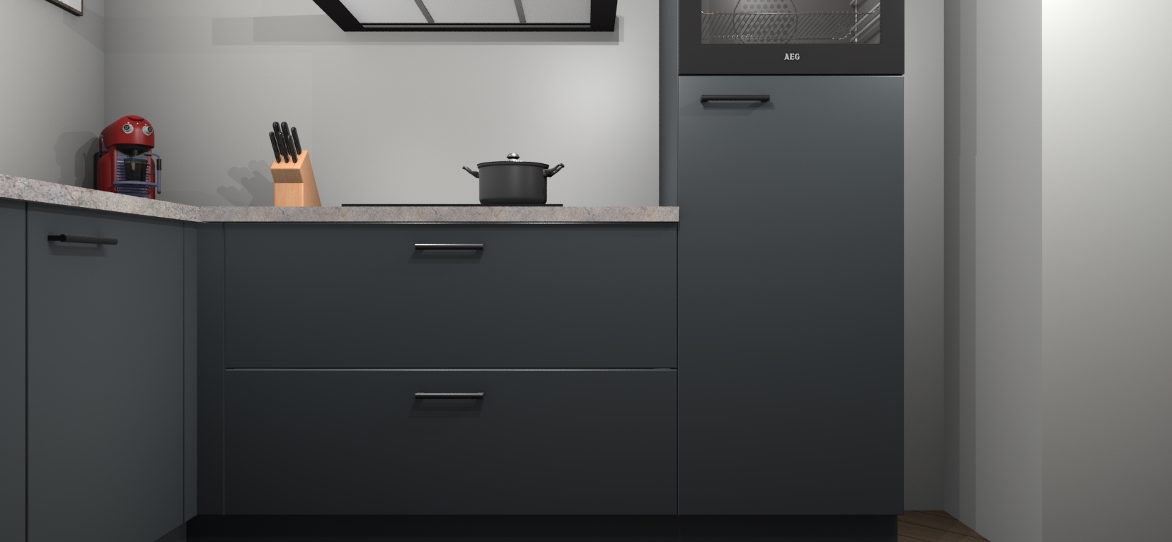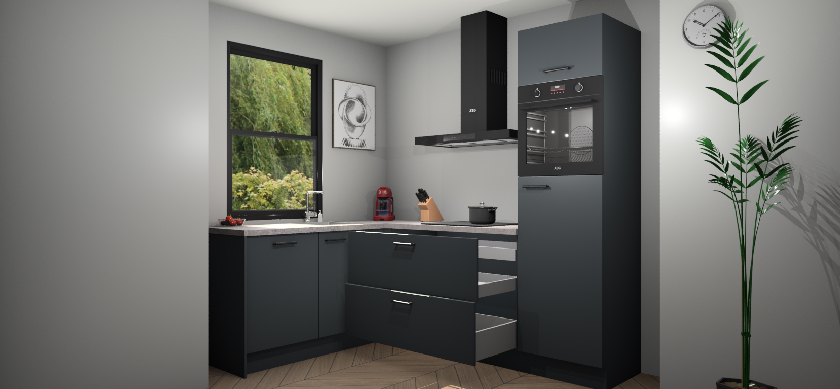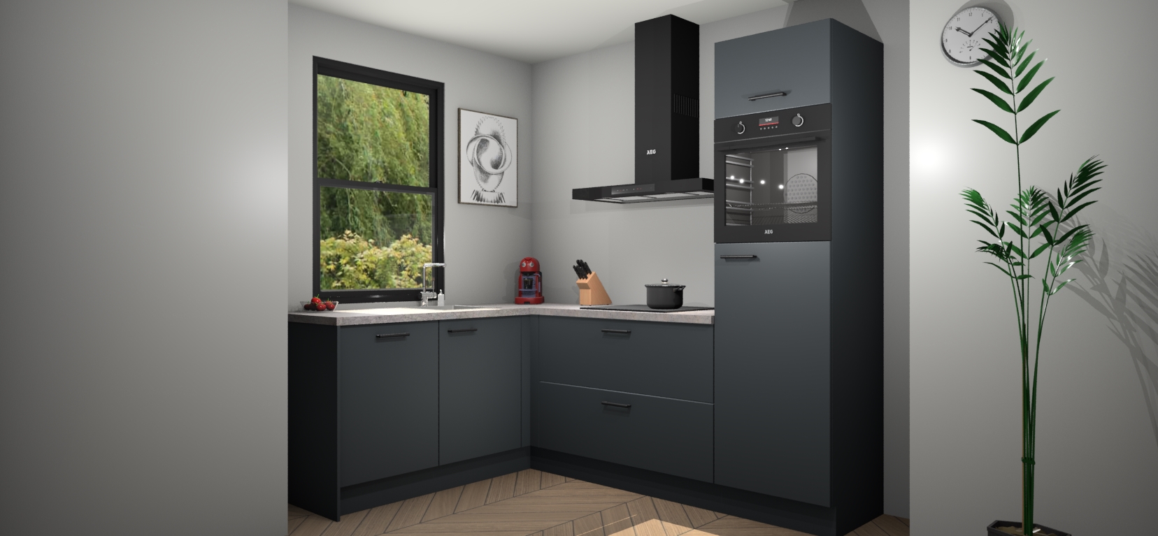 Inclusief plinten, stelpoten en werkblad