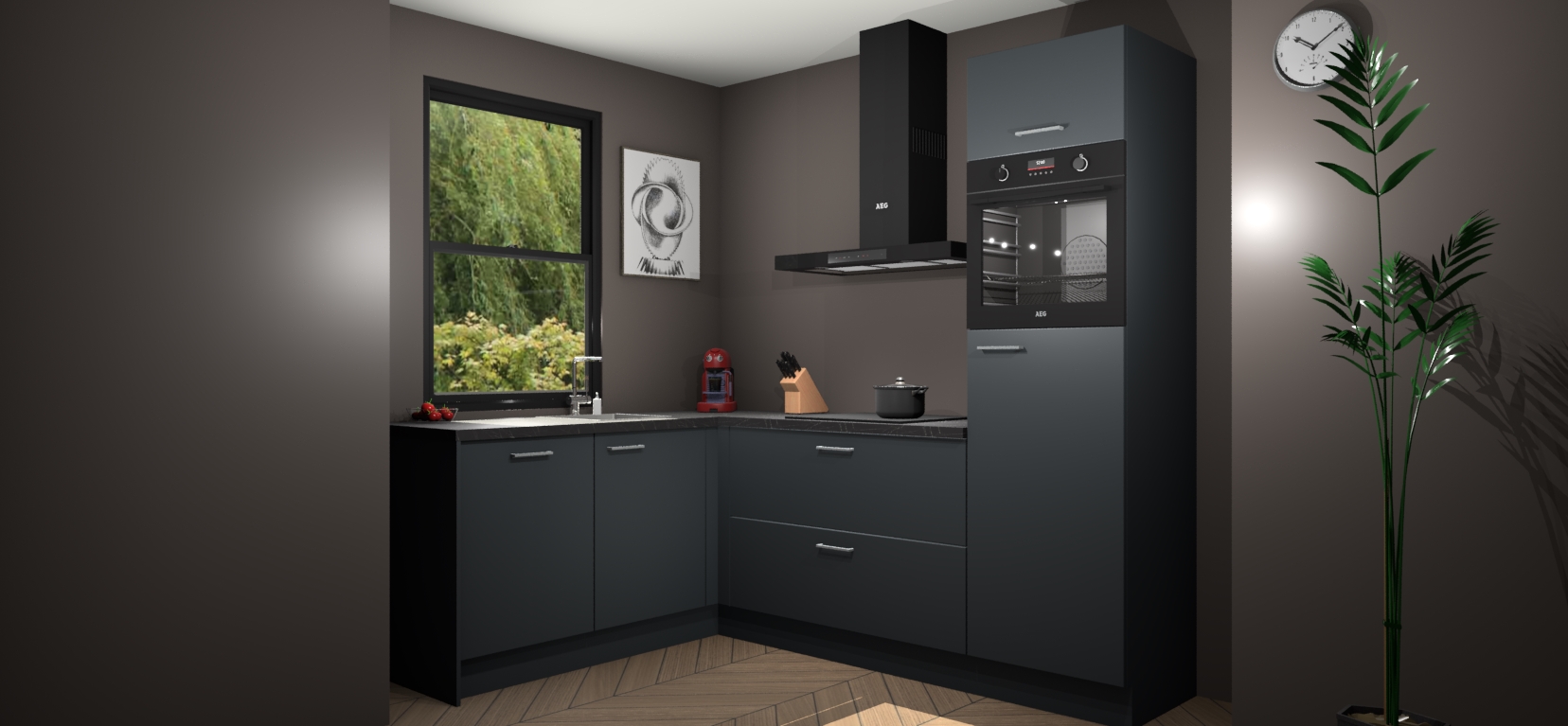 Deze prachtige hoekkeuken heeft alle benodigdheden om uw droomkook- en eetruimte compleet te maken. De Onyxgrijze kasten bieden een echo van raffinement, terwijl de 5 inbouwapparaten genoeg opties bieden voor het bereiden van heerlijke maaltijden. De oven, inductiekookplaat, afzuigkap, vaatwasser en koelkast zorgen ervoor dat u tijd in de keuken zo efficiënt mogelijk verloopt, terwijl ze ook dat extra vleugje luxe bieden.