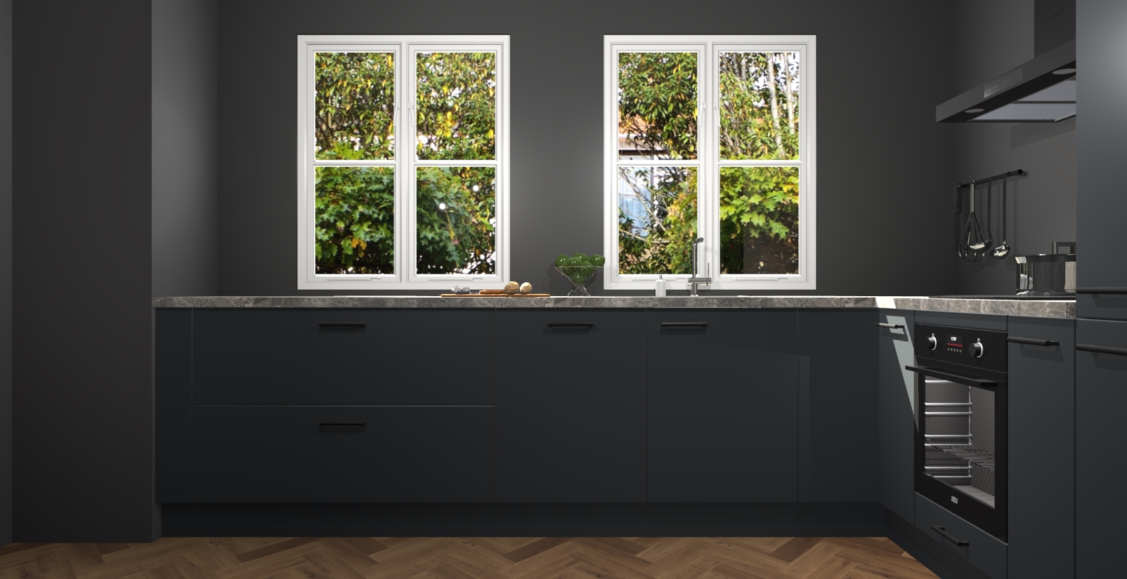 En dat is nog niet alles! U kunt bij uw bestelling ook uw keuken makkelijk upgraden naar AEG apparatuur. Alles wat u nodig heeft om te koken - meteen vanaf het begin! Met zo'n uitstekend pakket is het geen verrassing dat de Onyxgrijze keuken Konin een van onze populairste producten is!