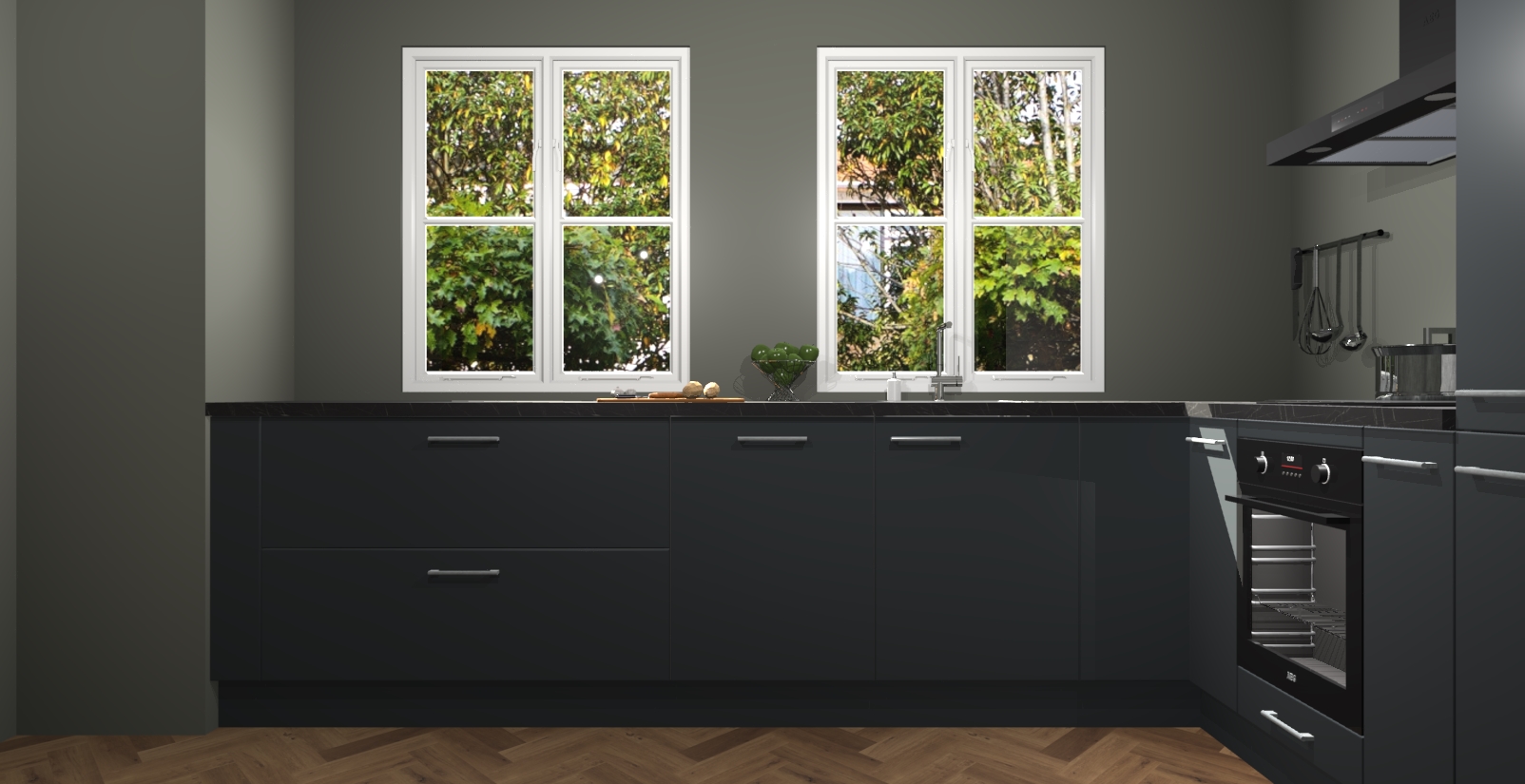 En dat is nog niet alles! U kunt bij uw bestelling ook uw keuken makkelijk upgraden naar AEG apparatuur. Alles wat u nodig heeft om te koken - meteen vanaf het begin! Met zo'n uitstekend pakket is het geen verrassing dat de Onyxgrijze keuken Konin een van onze populairste producten is!