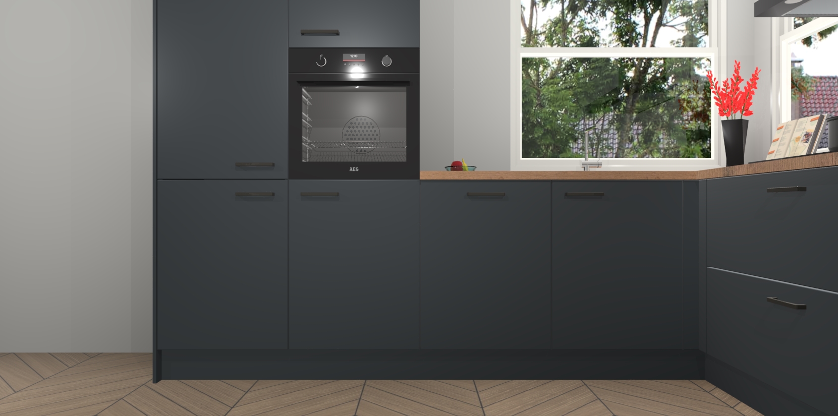 Elke Onyxgrijze keuken Kotor wordt compleet geleverd met vijf inbouwapparaten, waaronder een oven, inductiekookplaat, afzuigkap, vaatwasser en koelkast. Sterker nog - indien gewenst kunt u deze apparaten na bestelling eenvoudig upgraden naar AEG! Extra functies zijn onder andere soft close deuren voor extra gemak, en elke kast wordt voor gemonteerd geleverd zodat u sneller van uw nieuwe keuken kunt genieten.