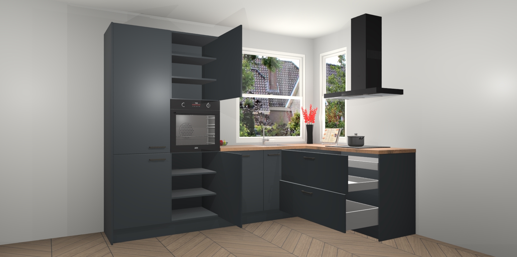 Het is tijd om halsoverkop verliefd te worden op uw droomkeuken, en de Onyxgrijze keuken Kotor is precies wat u nodig heeft! Met een moderne, tijdloze constructie en een mix van prachtig design zal deze luxe hoekkeuken zeker opvallen. Maar laat de schoonheid u niet afleiden van de indrukwekkende functies - want onder dit alles schuilt een onovertroffen hoeveelheid lekkers!