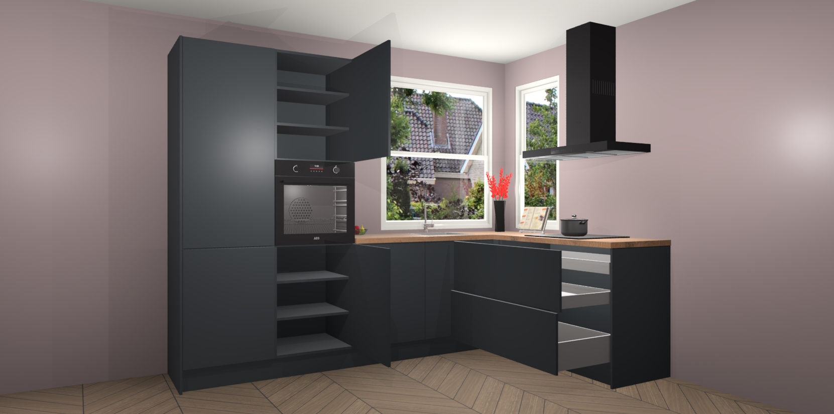 Elke Onyxgrijze keuken Kotor wordt compleet geleverd met vijf inbouwapparaten, waaronder een oven, inductiekookplaat, afzuigkap, vaatwasser en koelkast. Sterker nog - indien gewenst kunt u deze apparaten na bestelling eenvoudig upgraden naar AEG! Extra functies zijn onder andere soft close deuren voor extra gemak, en elke kast wordt voor gemonteerd geleverd zodat u sneller van uw nieuwe keuken kunt genieten.