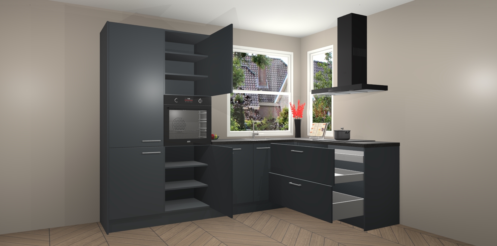 Het is tijd om halsoverkop verliefd te worden op uw droomkeuken, en de Onyxgrijze keuken Kotor is precies wat u nodig heeft! Met een moderne, tijdloze constructie en een mix van prachtig design zal deze luxe hoekkeuken zeker opvallen. Maar laat de schoonheid u niet afleiden van de indrukwekkende functies - want onder dit alles schuilt een onovertroffen hoeveelheid lekkers!