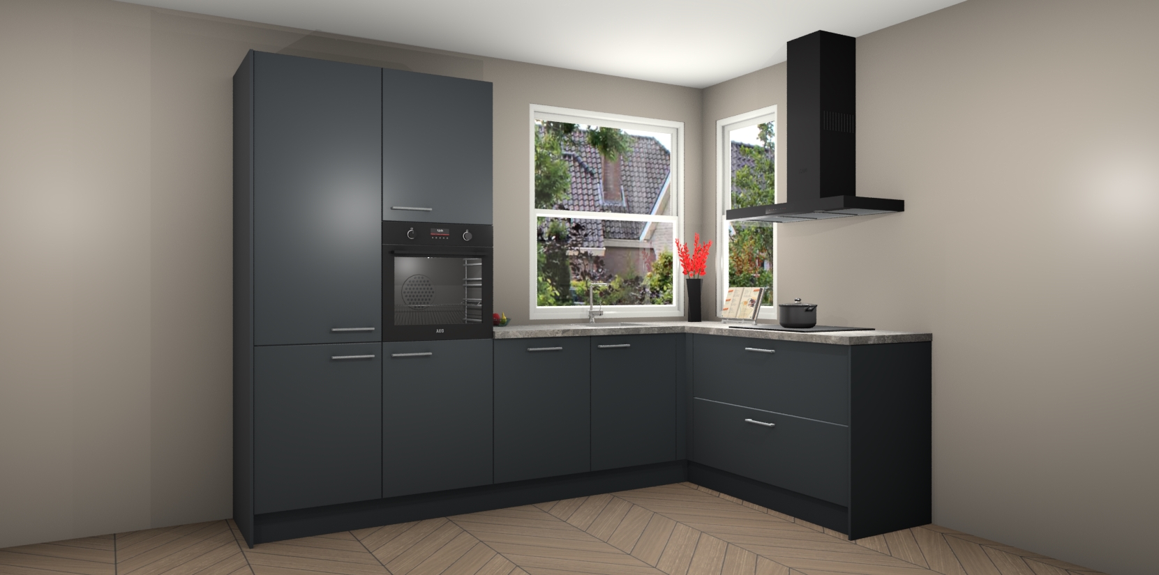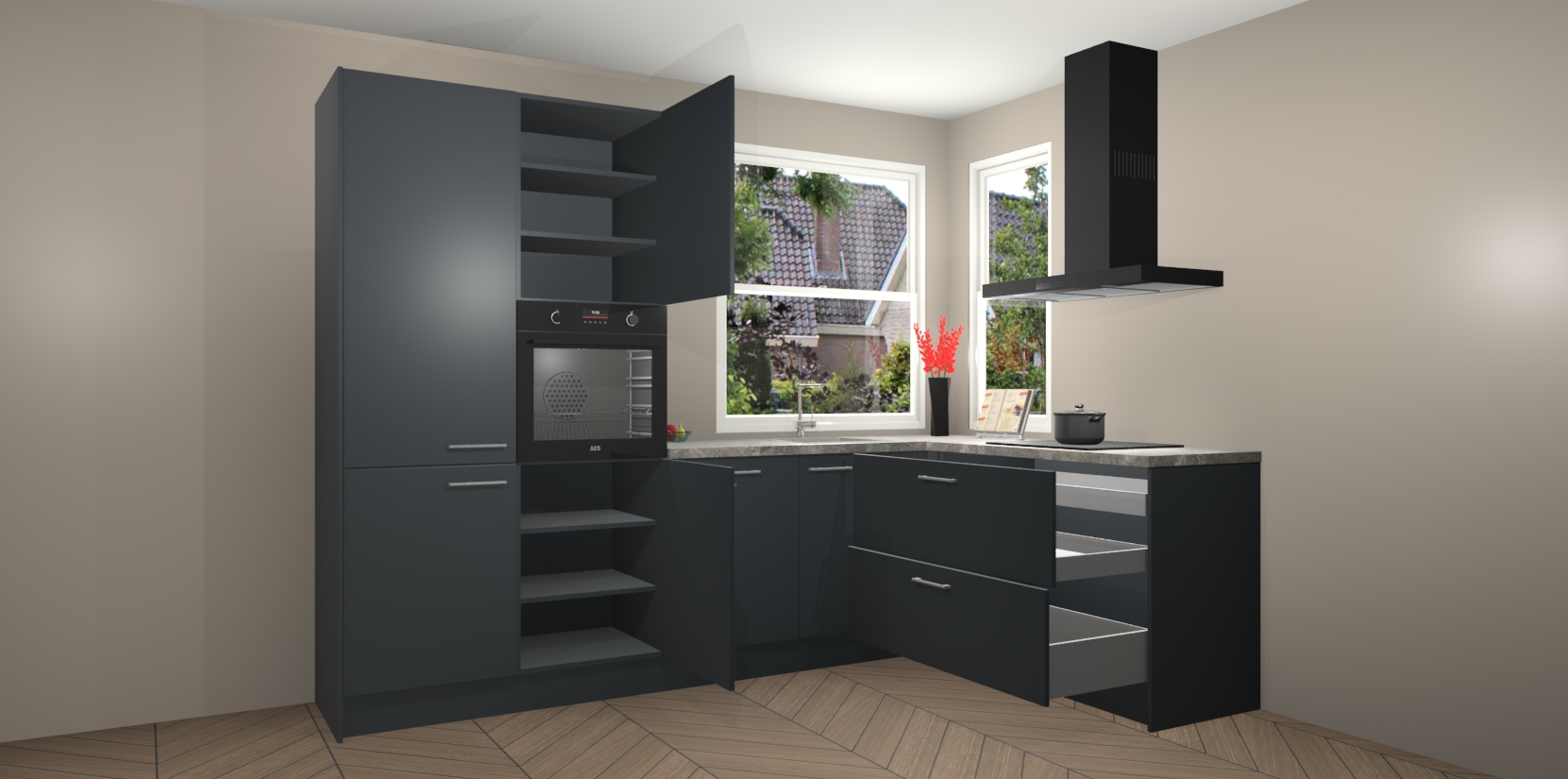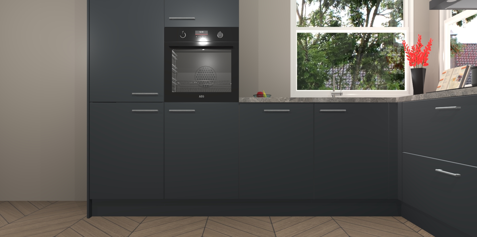 Elke Onyxgrijze keuken Kotor wordt compleet geleverd met vijf inbouwapparaten, waaronder een oven, inductiekookplaat, afzuigkap, vaatwasser en koelkast. Sterker nog - indien gewenst kunt u deze apparaten na bestelling eenvoudig upgraden naar AEG! Extra functies zijn onder andere soft close deuren voor extra gemak, en elke kast wordt voor gemonteerd geleverd zodat u sneller van uw nieuwe keuken kunt genieten.
