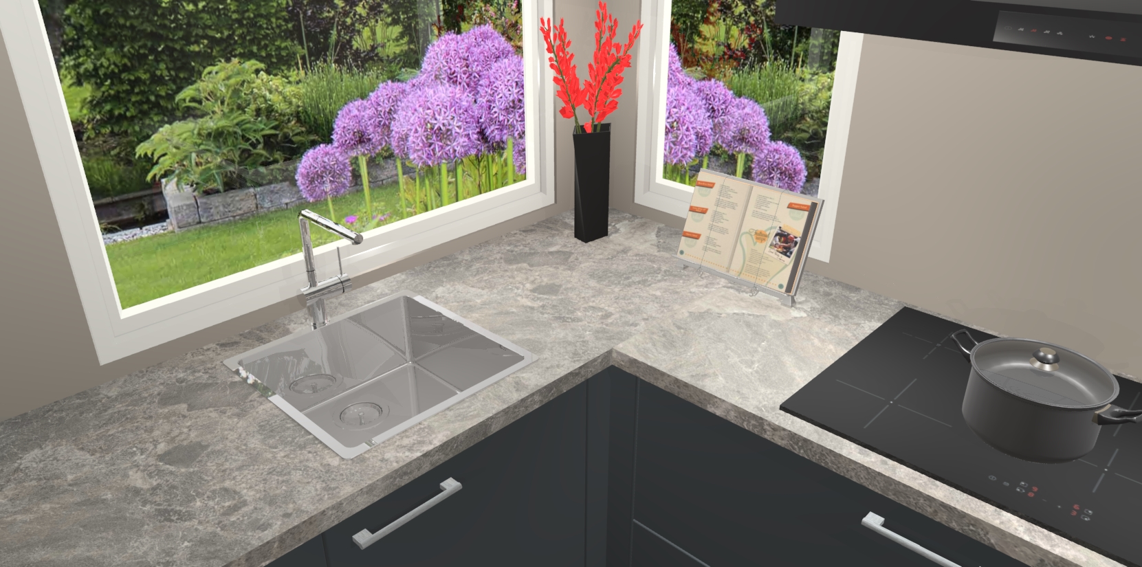 Het is tijd om halsoverkop verliefd te worden op uw droomkeuken, en de Onyxgrijze keuken Kotor is precies wat u nodig heeft! Met een moderne, tijdloze constructie en een mix van prachtig design zal deze luxe hoekkeuken zeker opvallen. Maar laat de schoonheid u niet afleiden van de indrukwekkende functies - want onder dit alles schuilt een onovertroffen hoeveelheid lekkers!