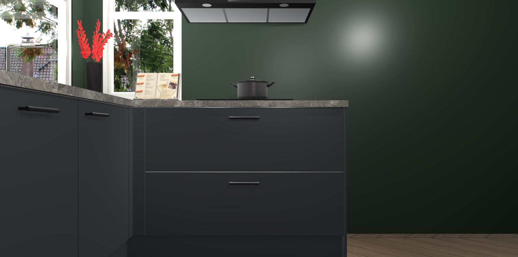 In deze box zijn alle kleuren verzameld van de deuren en werkbladen. Vraag de gratis kleurenbox aan en kijk thuis rustig verder!