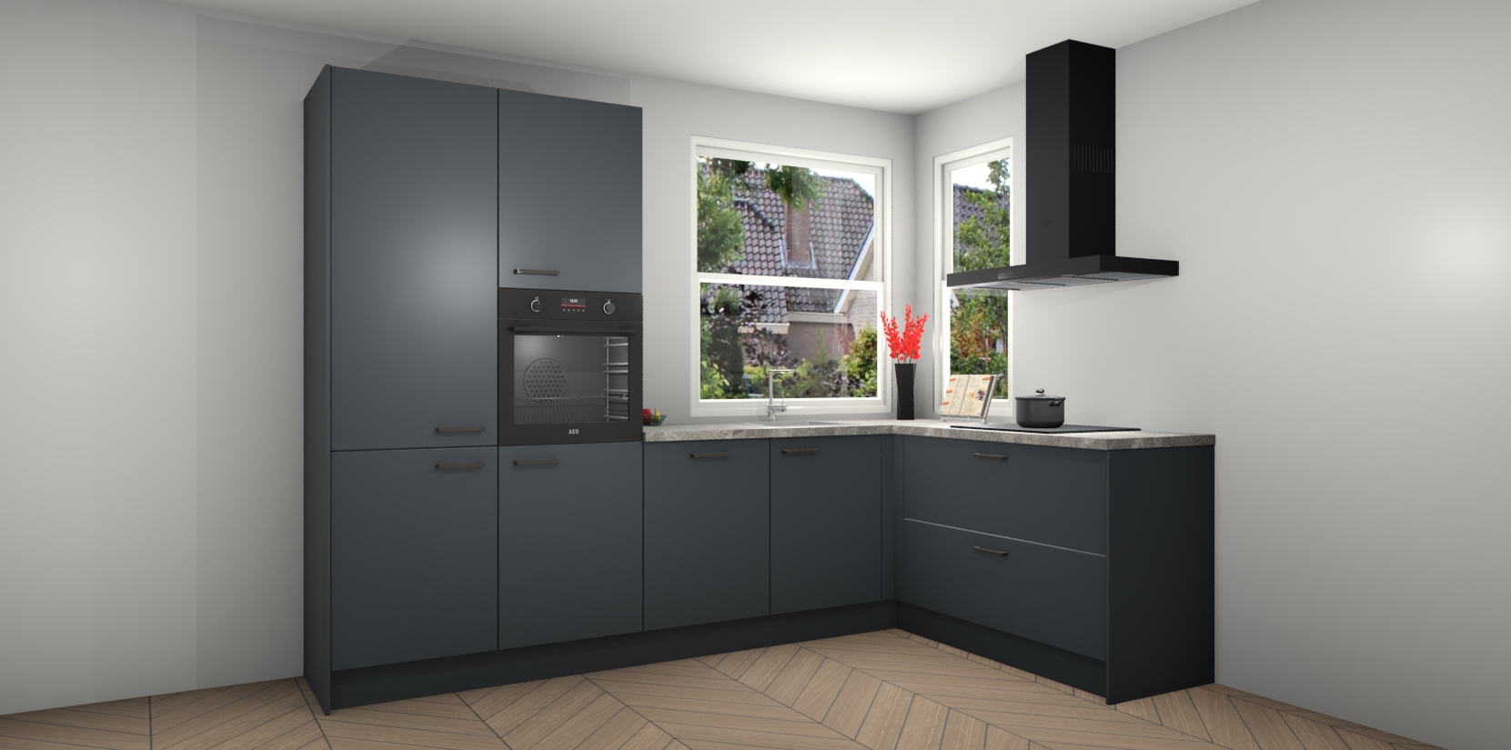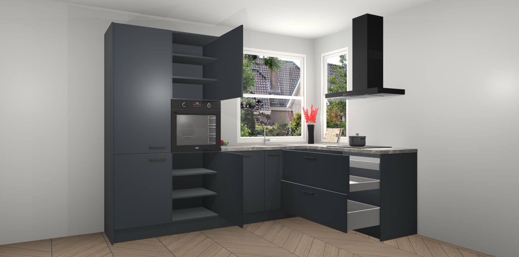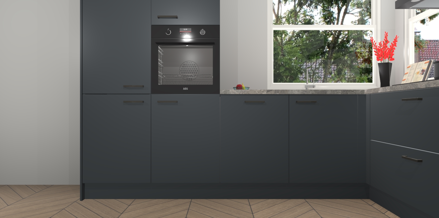 Elke Onyxgrijze keuken Kotor wordt compleet geleverd met vijf inbouwapparaten, waaronder een oven, inductiekookplaat, afzuigkap, vaatwasser en koelkast. Sterker nog - indien gewenst kunt u deze apparaten na bestelling eenvoudig upgraden naar AEG! Extra functies zijn onder andere soft close deuren voor extra gemak, en elke kast wordt voor gemonteerd geleverd zodat u sneller van uw nieuwe keuken kunt genieten.