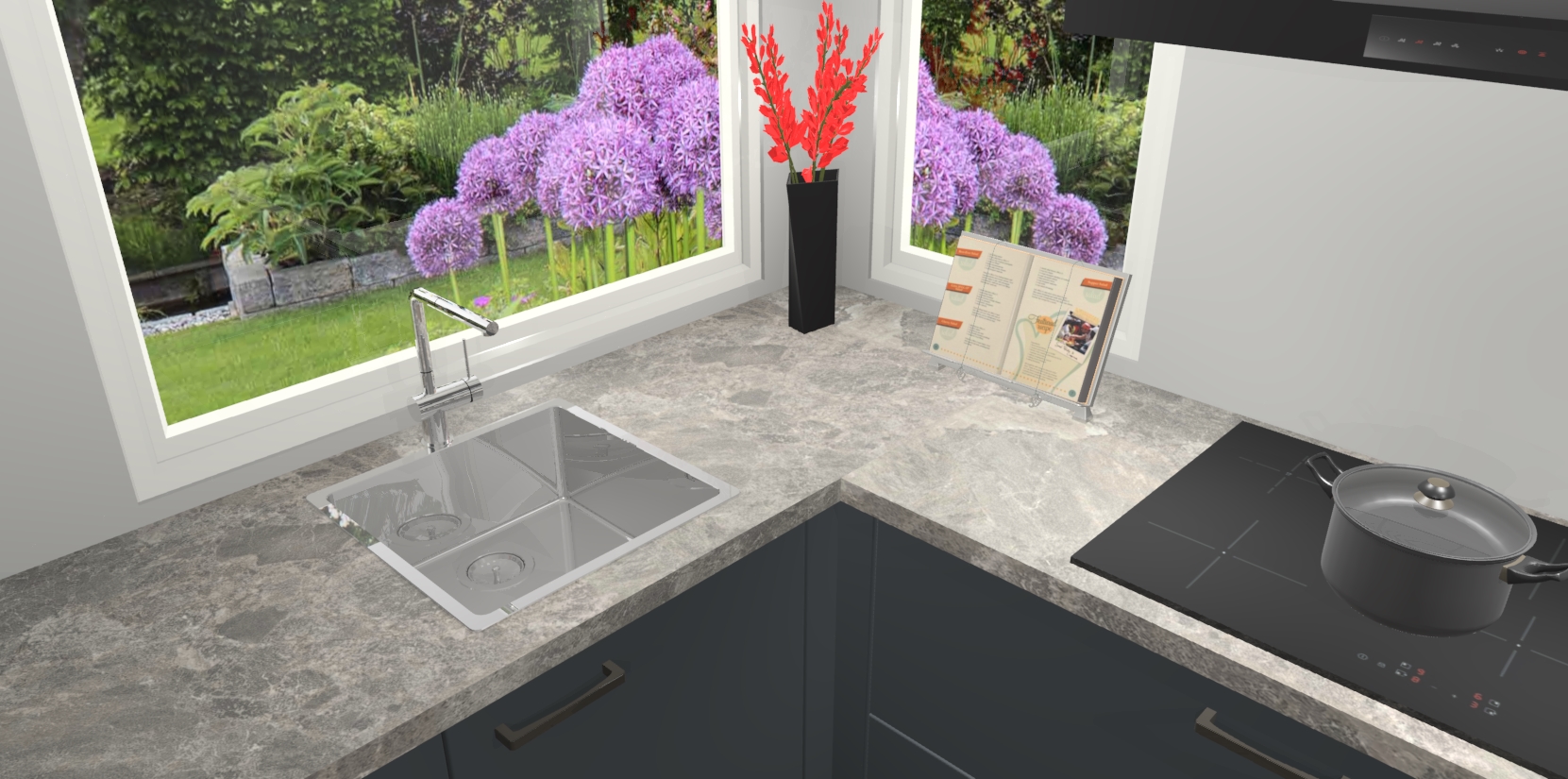 Het is tijd om halsoverkop verliefd te worden op uw droomkeuken, en de Onyxgrijze keuken Kotor is precies wat u nodig heeft! Met een moderne, tijdloze constructie en een mix van prachtig design zal deze luxe hoekkeuken zeker opvallen. Maar laat de schoonheid u niet afleiden van de indrukwekkende functies - want onder dit alles schuilt een onovertroffen hoeveelheid lekkers!