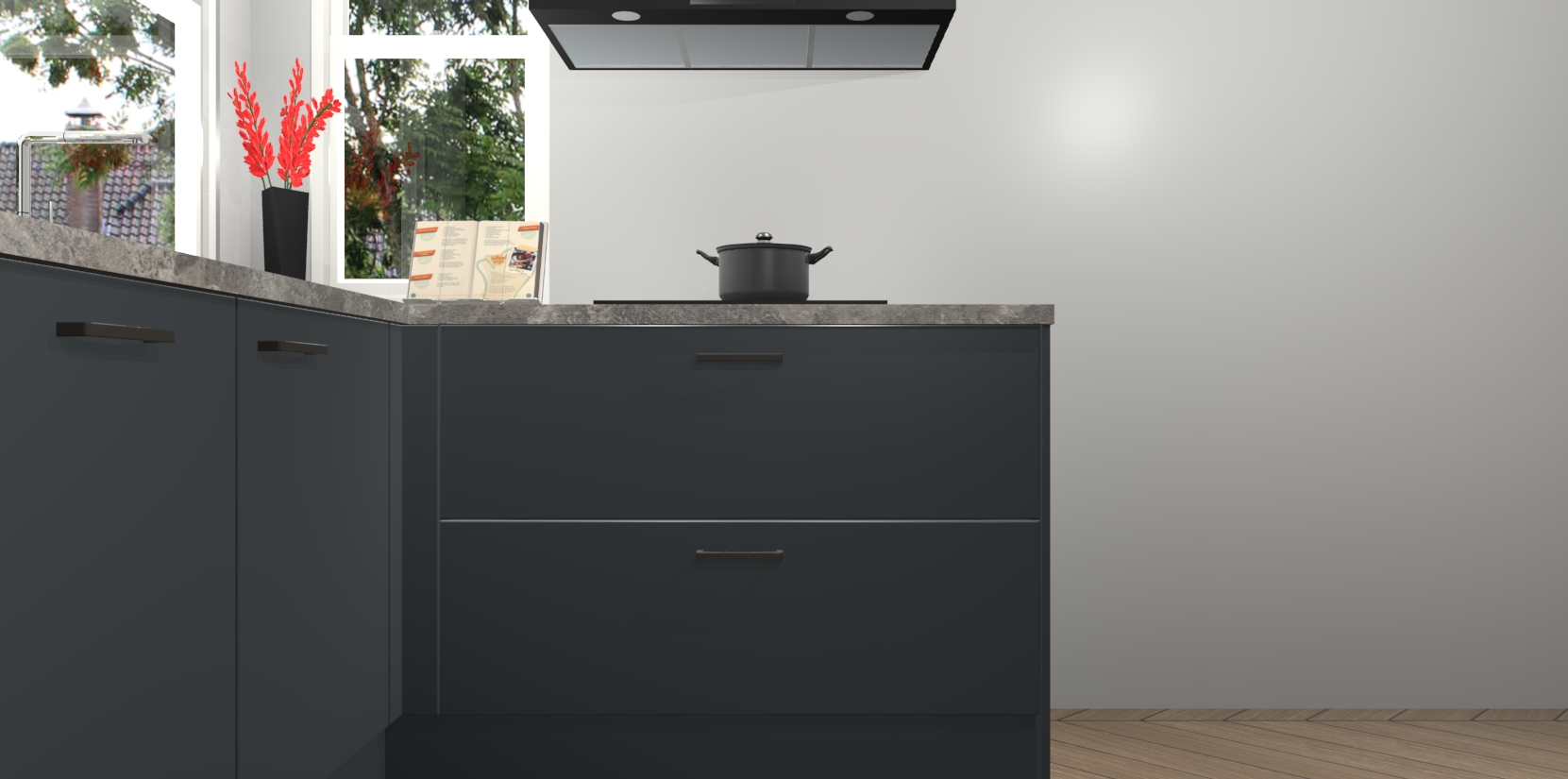 Inclusief plinten, stelpoten en werkblad