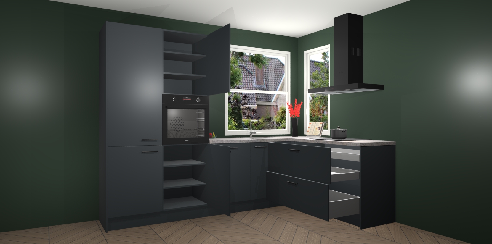 Elke Onyxgrijze keuken Kotor wordt compleet geleverd met vijf inbouwapparaten, waaronder een oven, inductiekookplaat, afzuigkap, vaatwasser en koelkast. Sterker nog - indien gewenst kunt u deze apparaten na bestelling eenvoudig upgraden naar AEG! Extra functies zijn onder andere soft close deuren voor extra gemak, en elke kast wordt voor gemonteerd geleverd zodat u sneller van uw nieuwe keuken kunt genieten.