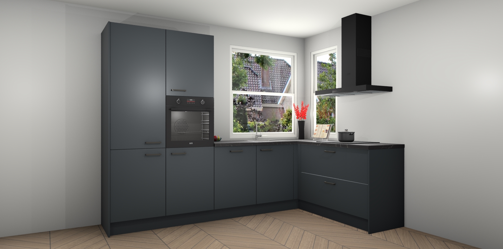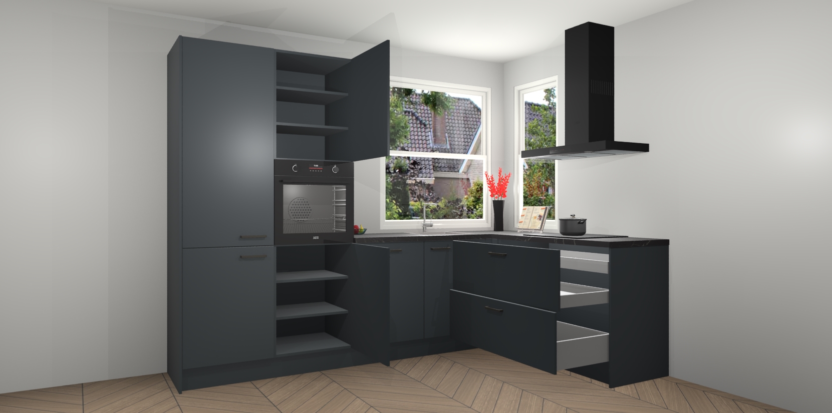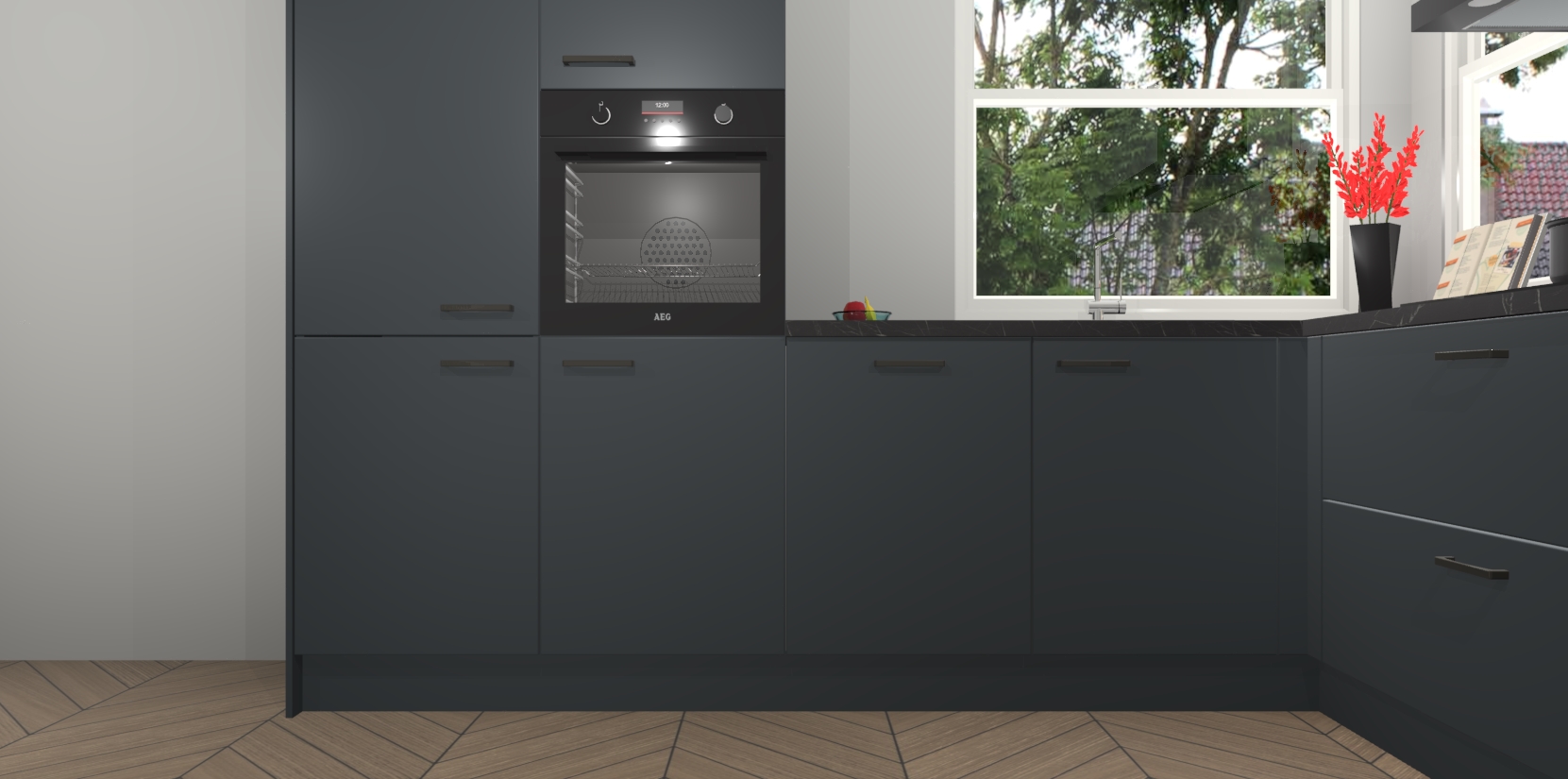 Elke Onyxgrijze keuken Kotor wordt compleet geleverd met vijf inbouwapparaten, waaronder een oven, inductiekookplaat, afzuigkap, vaatwasser en koelkast. Sterker nog - indien gewenst kunt u deze apparaten na bestelling eenvoudig upgraden naar AEG! Extra functies zijn onder andere soft close deuren voor extra gemak, en elke kast wordt voor gemonteerd geleverd zodat u sneller van uw nieuwe keuken kunt genieten.