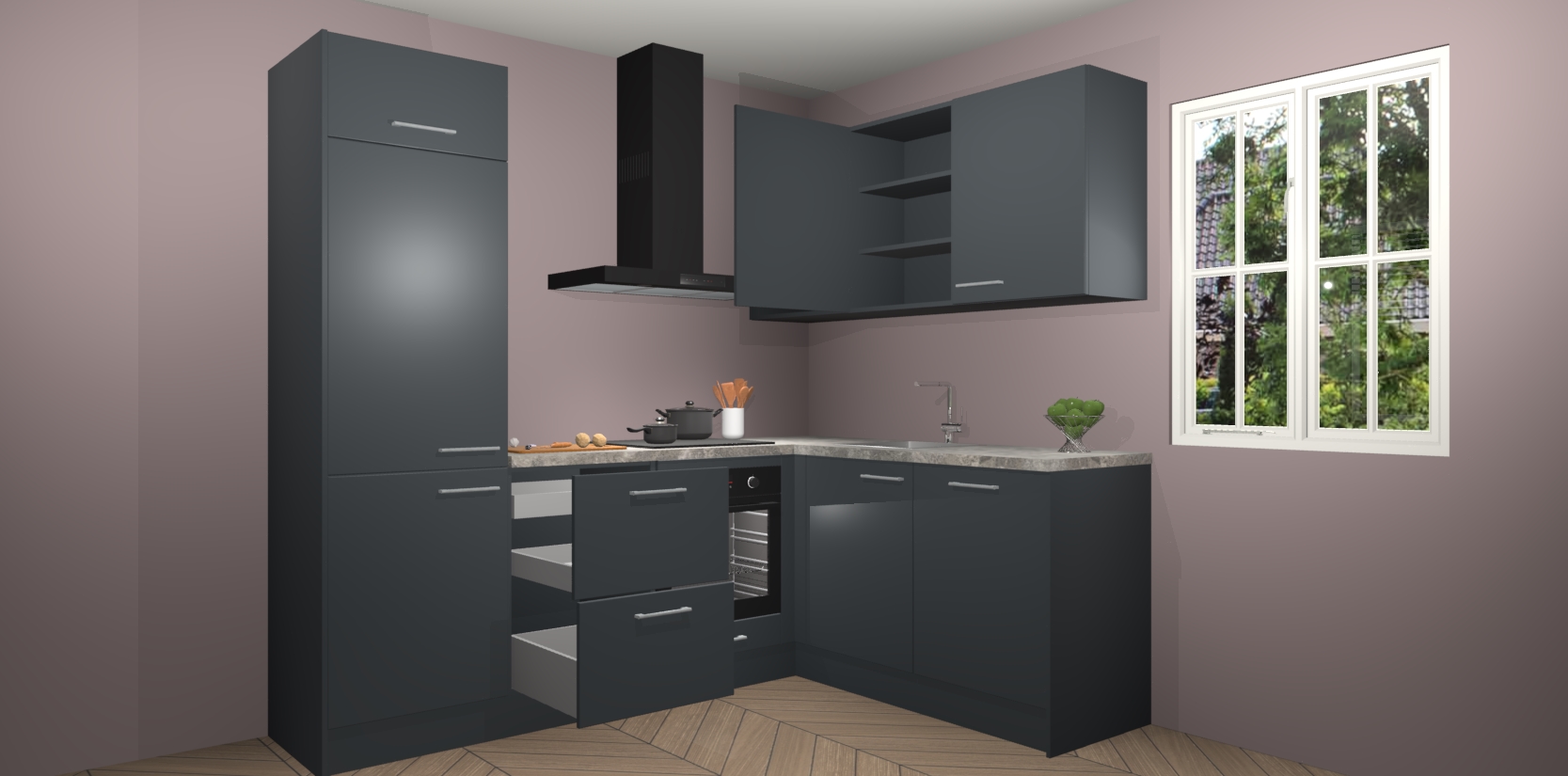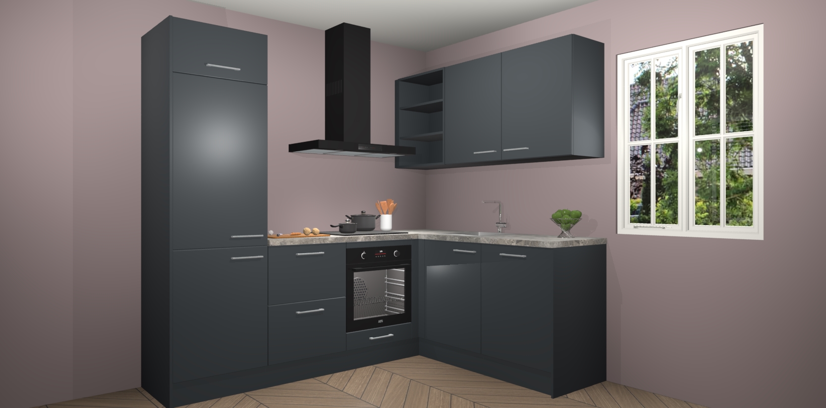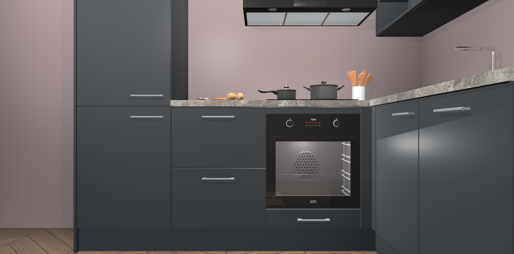 Dit model biedt u voldoende opbergruimte en vijf ingebouwde apparaten: een oven, inductiekookplaat, afzuigkap, vaatwasser en koelkast. Deze apparaten kunnen gemakkelijk worden geüpgrade naar AEG nadat u besteld heeft. De verschillende laden en kastjes bevatten softclose-deuren waardoor ze gezellig dichtvallen met een geruststellend helemaal geruisloos geluid. En dat is nog niet alles! We garanderen ook dat de prijs altijd laag blijft - dus haal nu uw Onyxgrijze keuken Krakau terwijl het kan.