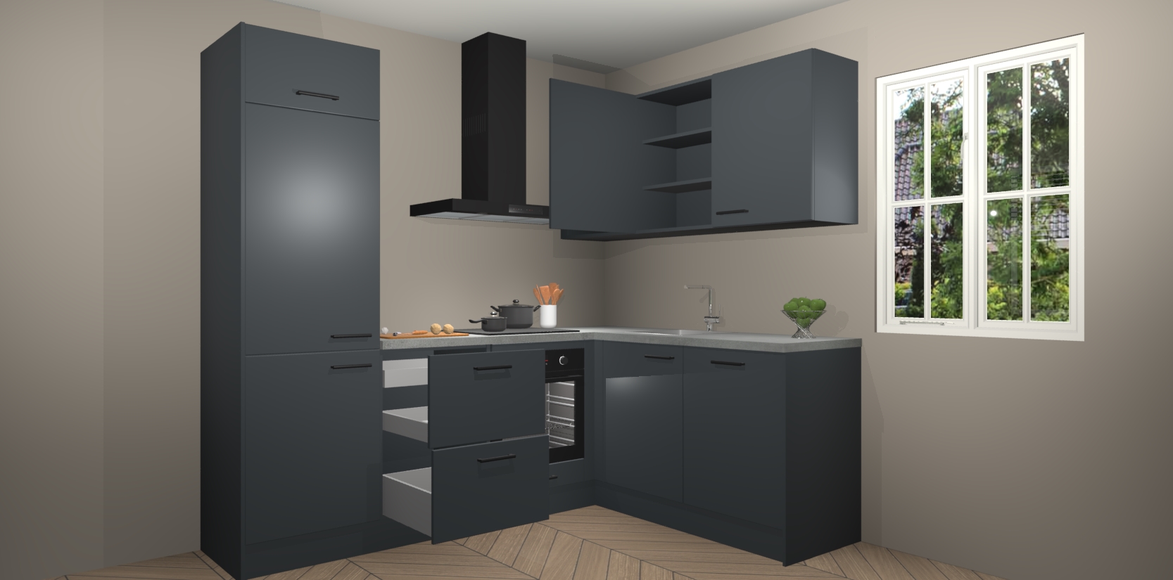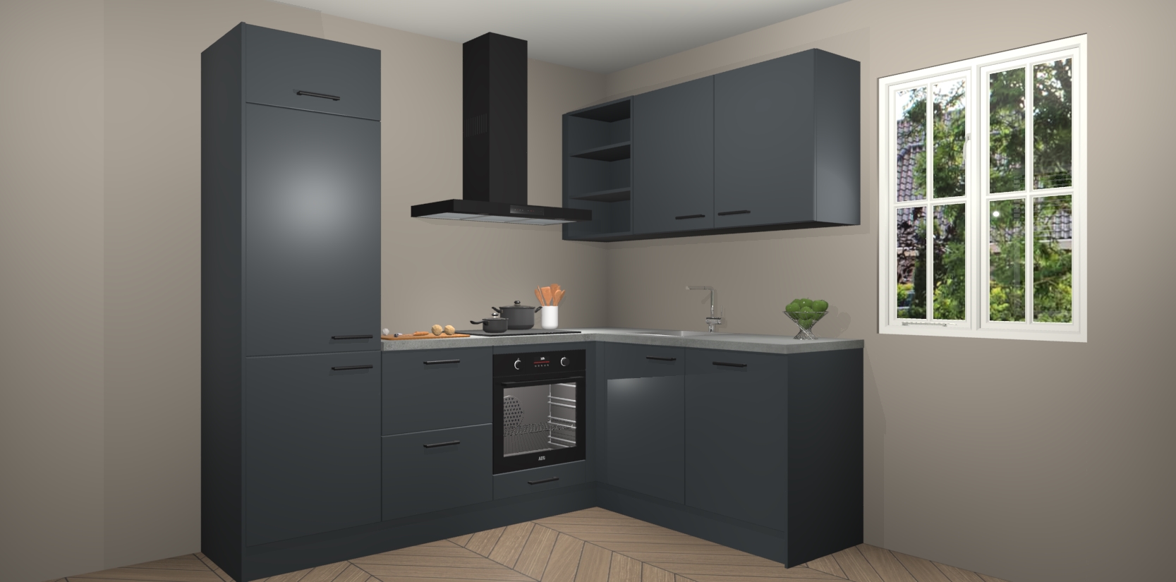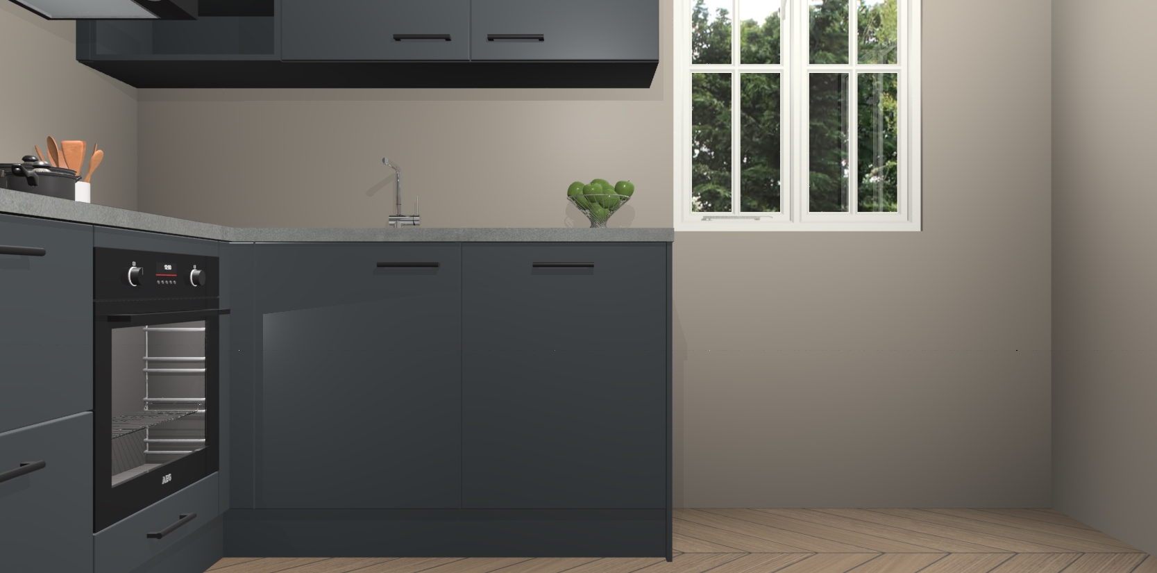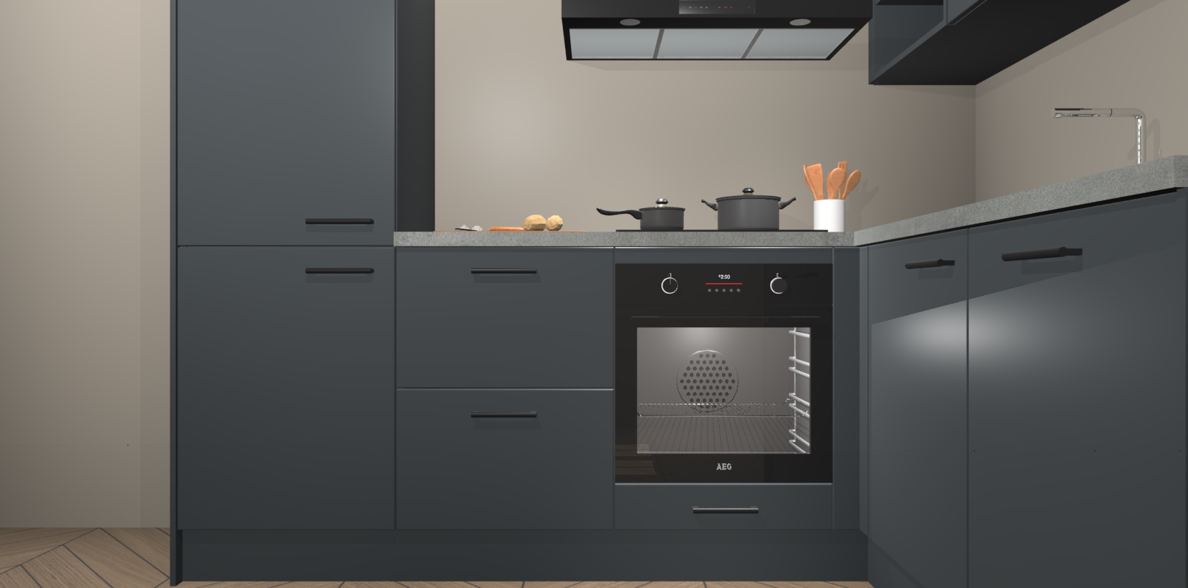 Dit model biedt u voldoende opbergruimte en vijf ingebouwde apparaten: een oven, inductiekookplaat, afzuigkap, vaatwasser en koelkast. Deze apparaten kunnen gemakkelijk worden geüpgrade naar AEG nadat u besteld heeft. De verschillende laden en kastjes bevatten softclose-deuren waardoor ze gezellig dichtvallen met een geruststellend helemaal geruisloos geluid. En dat is nog niet alles! We garanderen ook dat de prijs altijd laag blijft - dus haal nu uw Onyxgrijze keuken Krakau terwijl het kan.