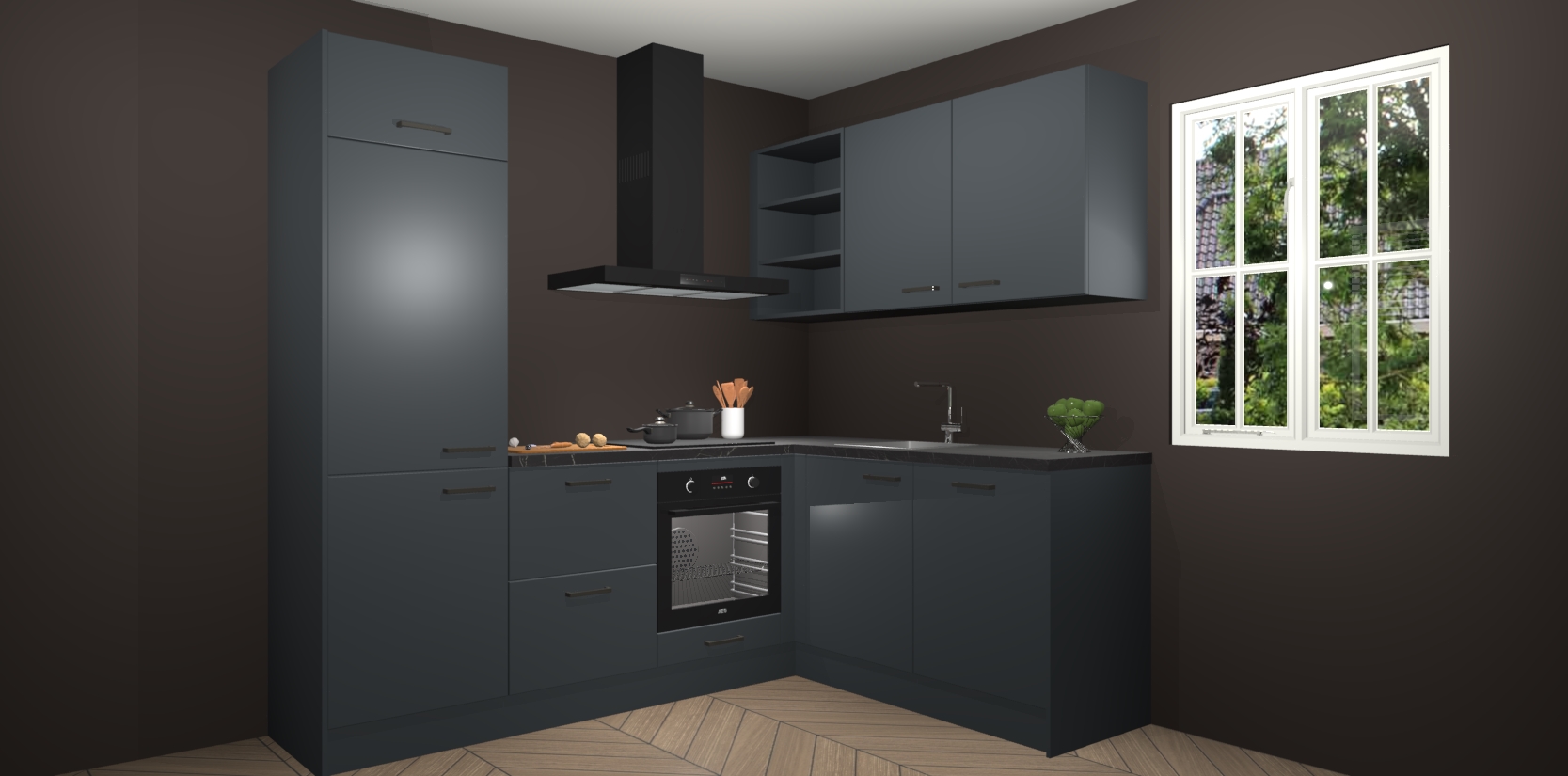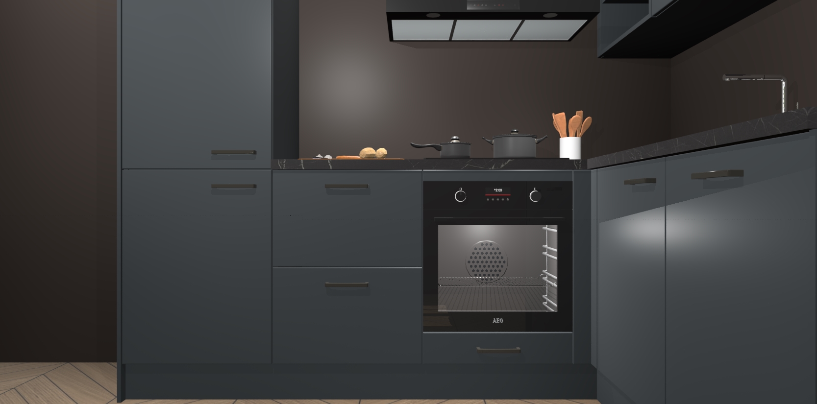 Dit model biedt u voldoende opbergruimte en vijf ingebouwde apparaten: een oven, inductiekookplaat, afzuigkap, vaatwasser en koelkast. Deze apparaten kunnen gemakkelijk worden geüpgrade naar AEG nadat u besteld heeft. De verschillende laden en kastjes bevatten softclose-deuren waardoor ze gezellig dichtvallen met een geruststellend helemaal geruisloos geluid. En dat is nog niet alles! We garanderen ook dat de prijs altijd laag blijft - dus haal nu uw Onyxgrijze keuken Krakau terwijl het kan.