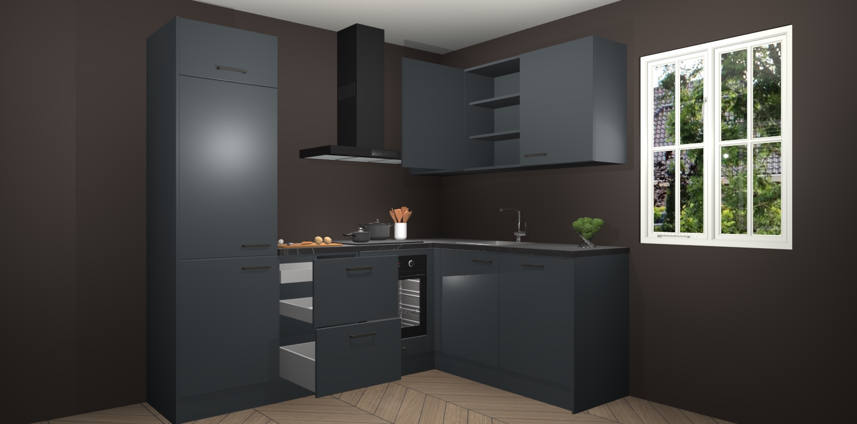 Bestellen was nog nooit zo makkelijk en we leveren met slechts 7 weken; zodra de keuken arriveert staan de kasten voor gemonteerd klaar om er alles aan te doen dat u hem gemakkelijk zelf kunt installeren! Eén ding is zeker: met de Onyxgrijze keuken Krakau slaagt u erin modischer, modernere keukens uit te rusten die tientallen jaren meegaan! Haal snel uw Onyxgrijze keuken Krakau - of u nu net begint of al 'levenservaring' hebt in de keukendroomloopbaan - want dit topmodel van onze collectie wilt u absoluut niet missen.