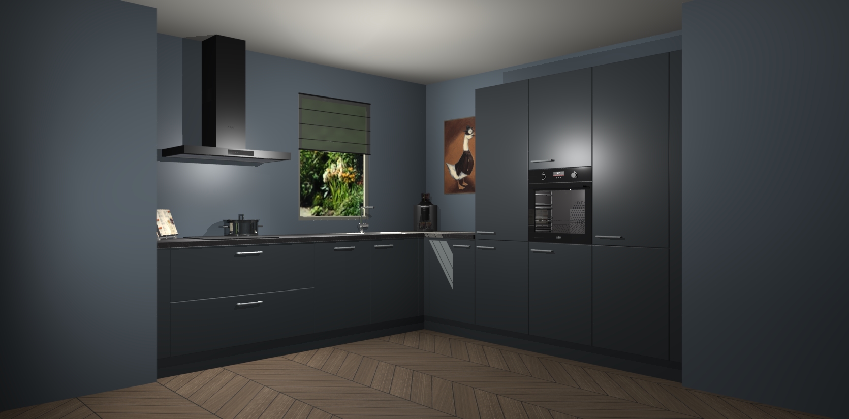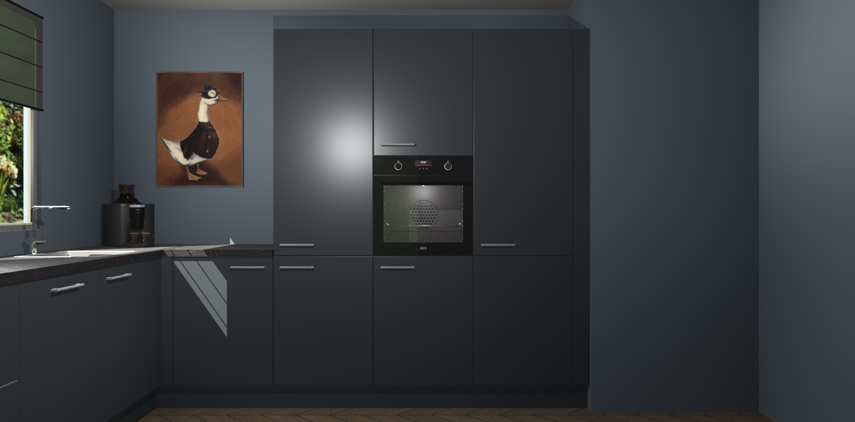Welkom bij de onyxgrijze keuken Laos. Deze prachtige keuken zal de komende jaren het middelpunt van de belangstelling in uw huis zijn. Uitgerust met vijf inbouwapparaten komt u nooit kookgereedschap tekort. Bovendien geeft de warme houtlook elke ruimte een uitnodigende en tijdloze uitstraling.