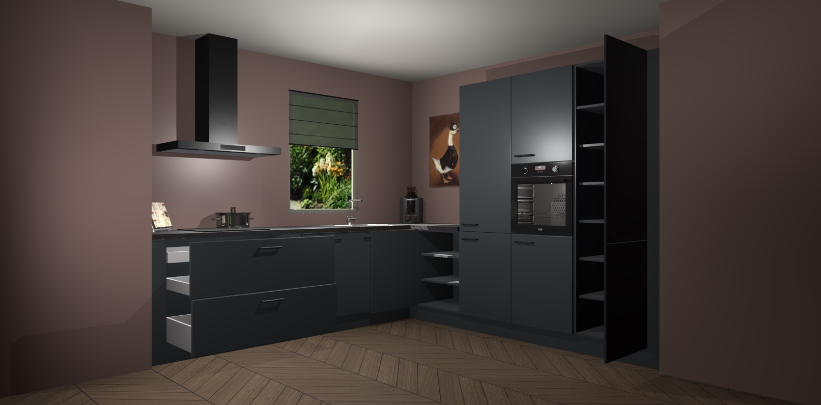 Welkom bij de onyxgrijze keuken Laos. Deze prachtige keuken zal de komende jaren het middelpunt van de belangstelling in uw huis zijn. Uitgerust met vijf inbouwapparaten komt u nooit kookgereedschap tekort. Bovendien geeft de warme houtlook elke ruimte een uitnodigende en tijdloze uitstraling.