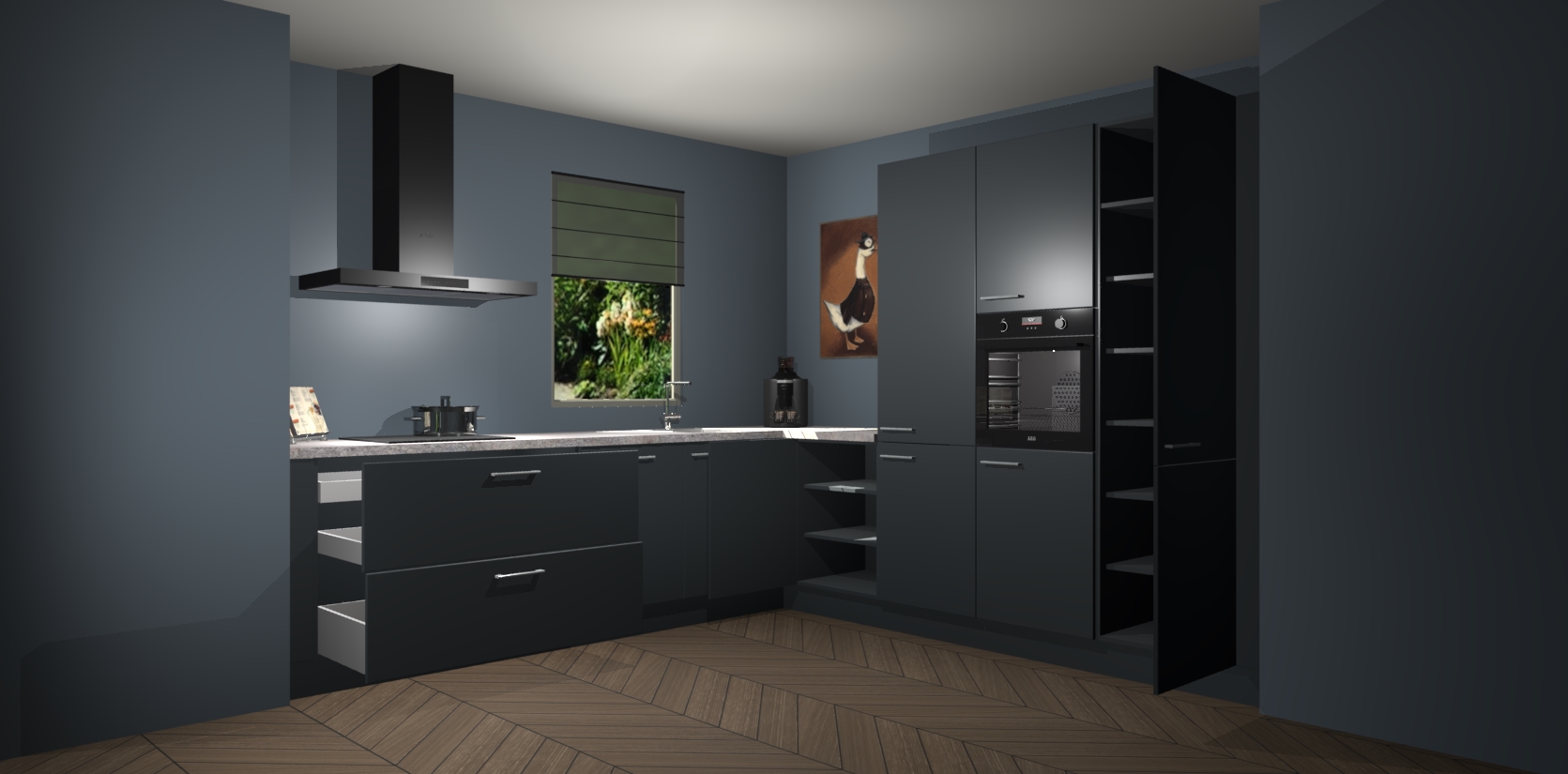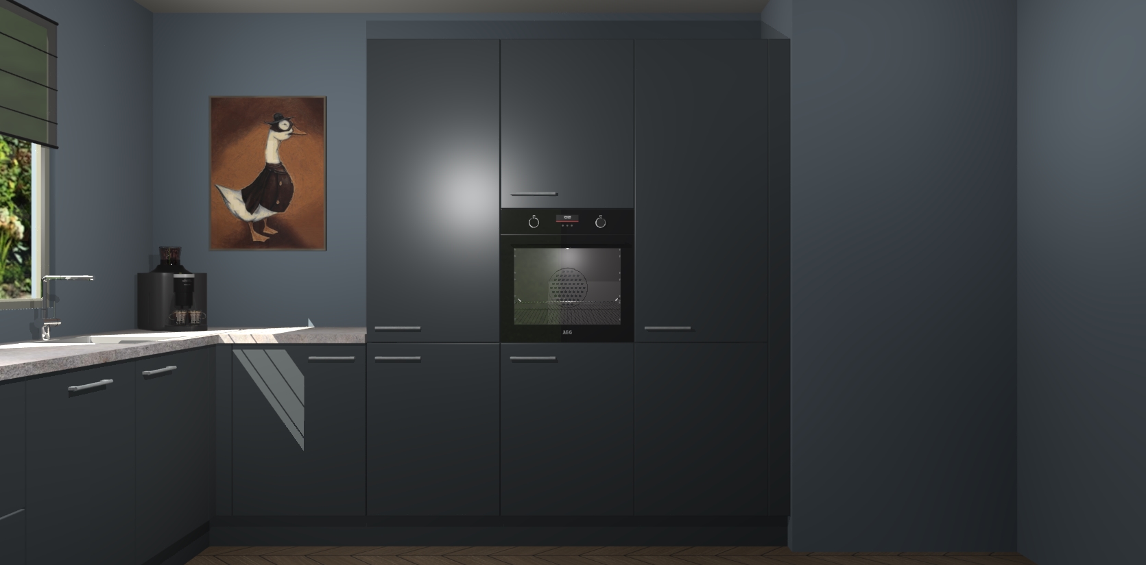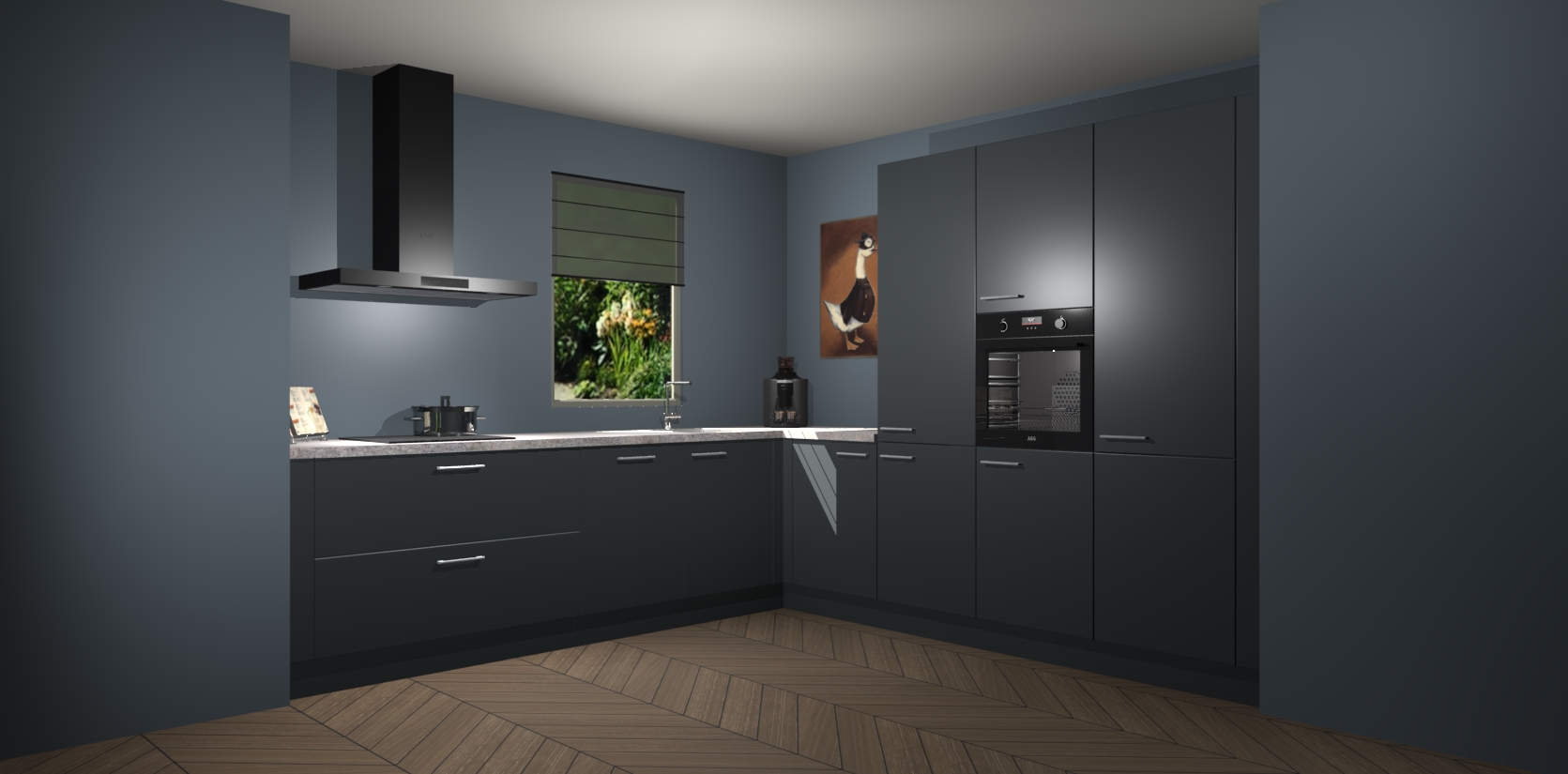Welkom bij de onyxgrijze keuken Laos. Deze prachtige keuken zal de komende jaren het middelpunt van de belangstelling in uw huis zijn. Uitgerust met vijf inbouwapparaten komt u nooit kookgereedschap tekort. Bovendien geeft de warme houtlook elke ruimte een uitnodigende en tijdloze uitstraling.