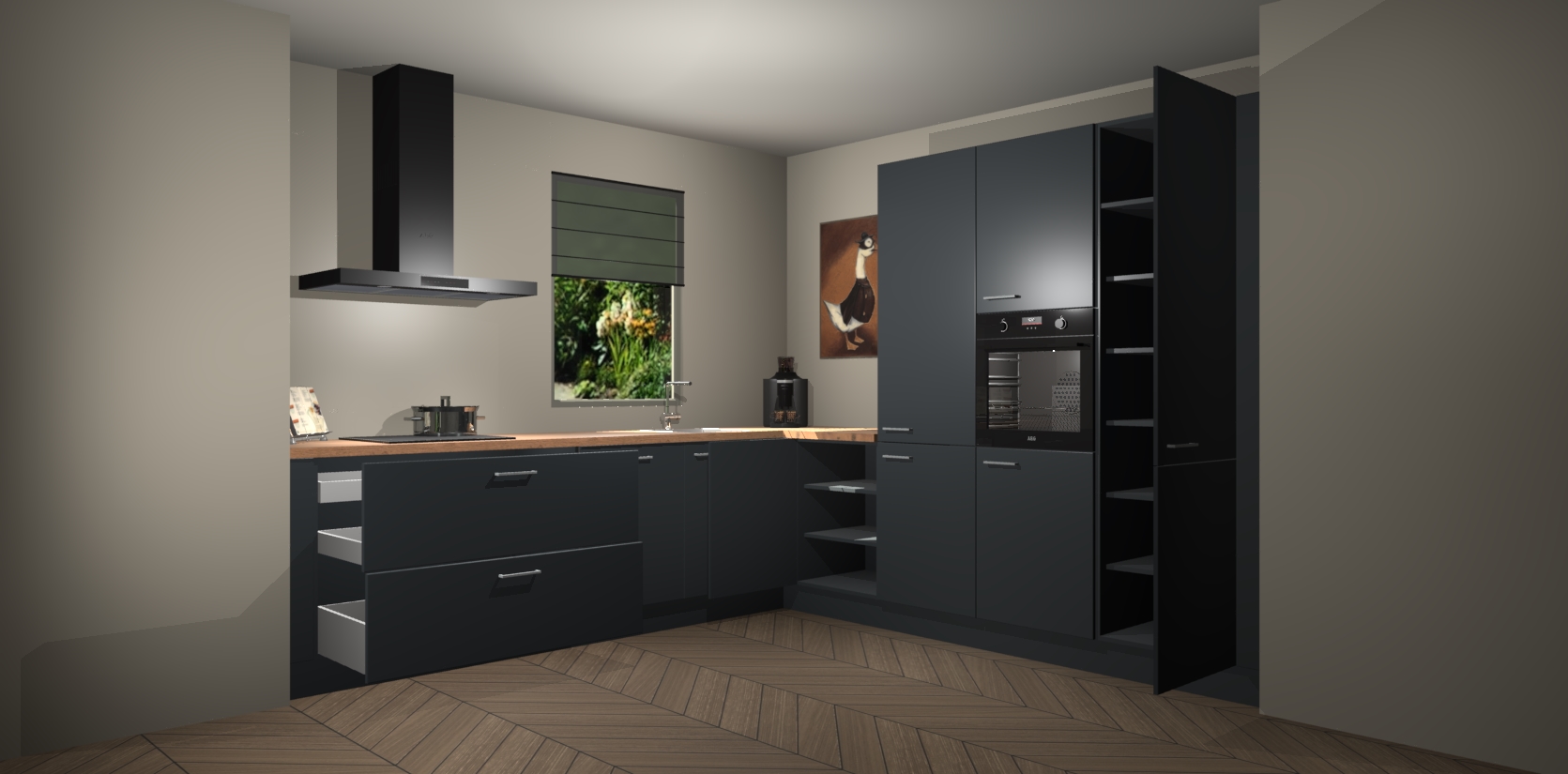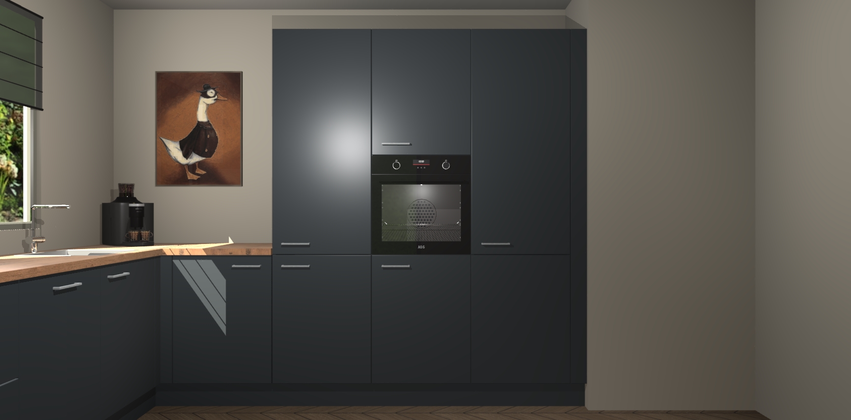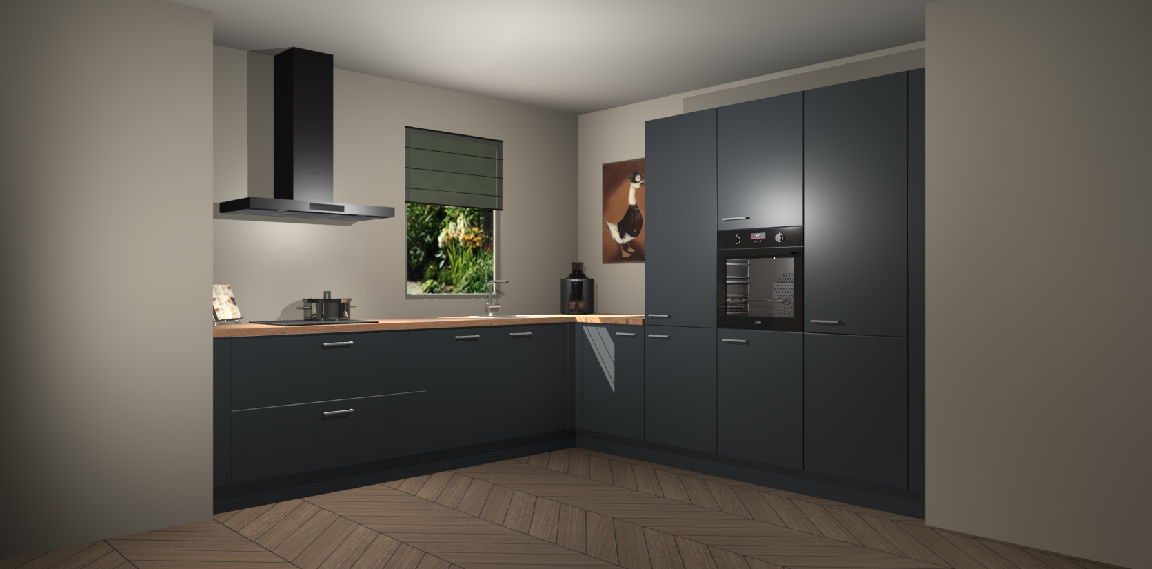 Welkom bij de onyxgrijze keuken Laos. Deze prachtige keuken zal de komende jaren het middelpunt van de belangstelling in uw huis zijn. Uitgerust met vijf inbouwapparaten komt u nooit kookgereedschap tekort. Bovendien geeft de warme houtlook elke ruimte een uitnodigende en tijdloze uitstraling.