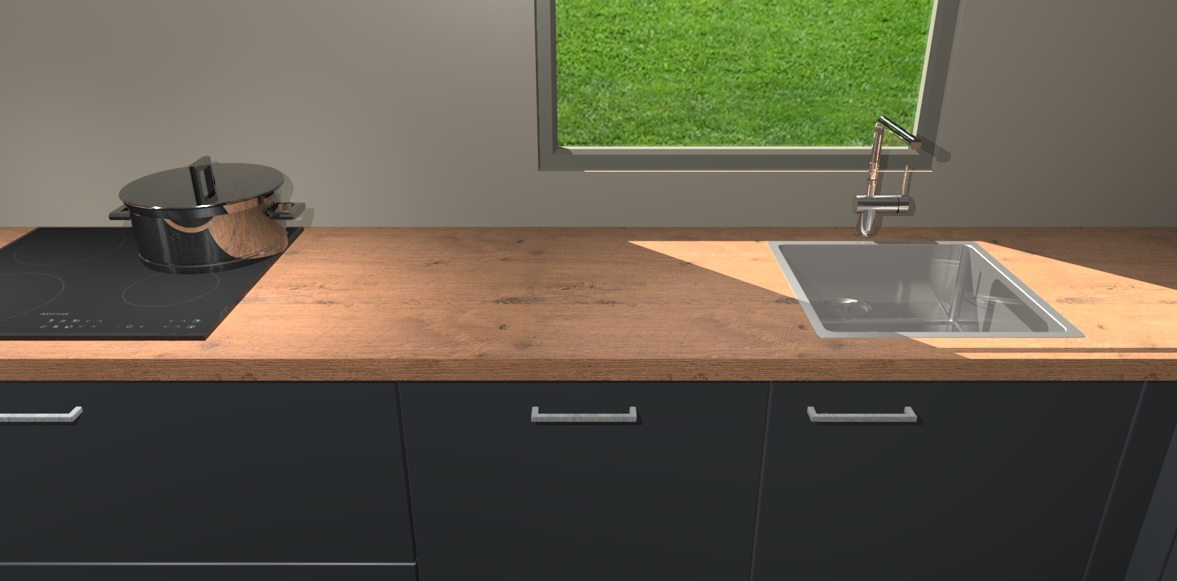 - Bij een hoekwerkblad zijn de hoeken in gevreesd en op maat gemaakt