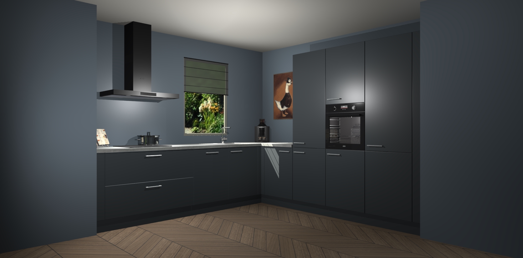 Welkom bij de onyxgrijze keuken Laos. Deze prachtige keuken zal de komende jaren het middelpunt van de belangstelling in uw huis zijn. Uitgerust met vijf inbouwapparaten komt u nooit kookgereedschap tekort. Bovendien geeft de warme houtlook elke ruimte een uitnodigende en tijdloze uitstraling.