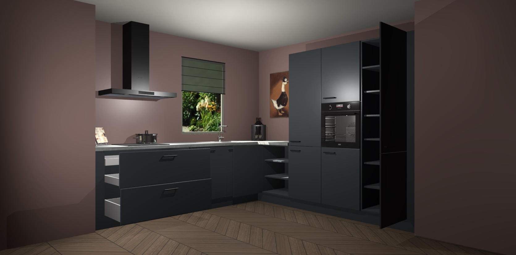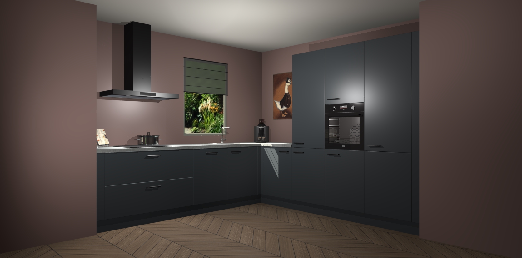 Welkom bij de onyxgrijze keuken Laos. Deze prachtige keuken zal de komende jaren het middelpunt van de belangstelling in uw huis zijn. Uitgerust met vijf inbouwapparaten komt u nooit kookgereedschap tekort. Bovendien geeft de warme houtlook elke ruimte een uitnodigende en tijdloze uitstraling.