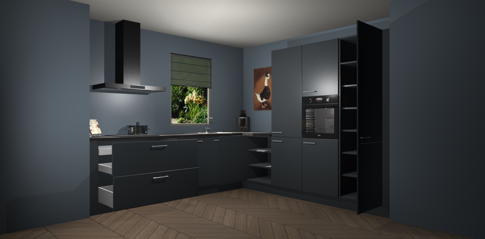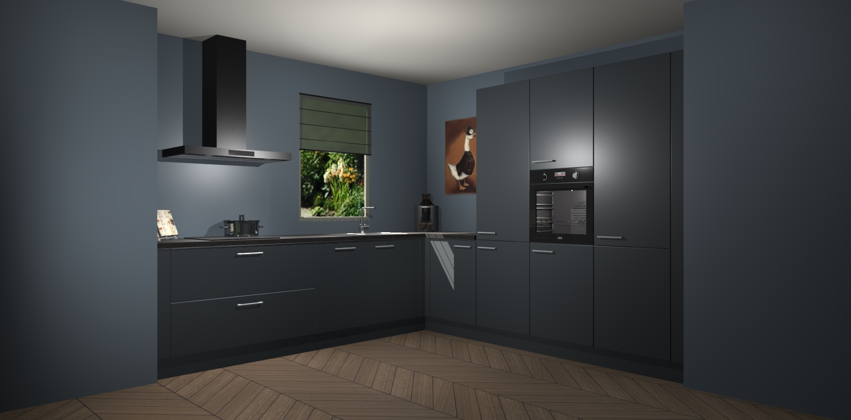 Welkom bij de onyxgrijze keuken Laos. Deze prachtige keuken zal de komende jaren het middelpunt van de belangstelling in uw huis zijn. Uitgerust met vijf inbouwapparaten komt u nooit kookgereedschap tekort. Bovendien geeft de warme houtlook elke ruimte een uitnodigende en tijdloze uitstraling.