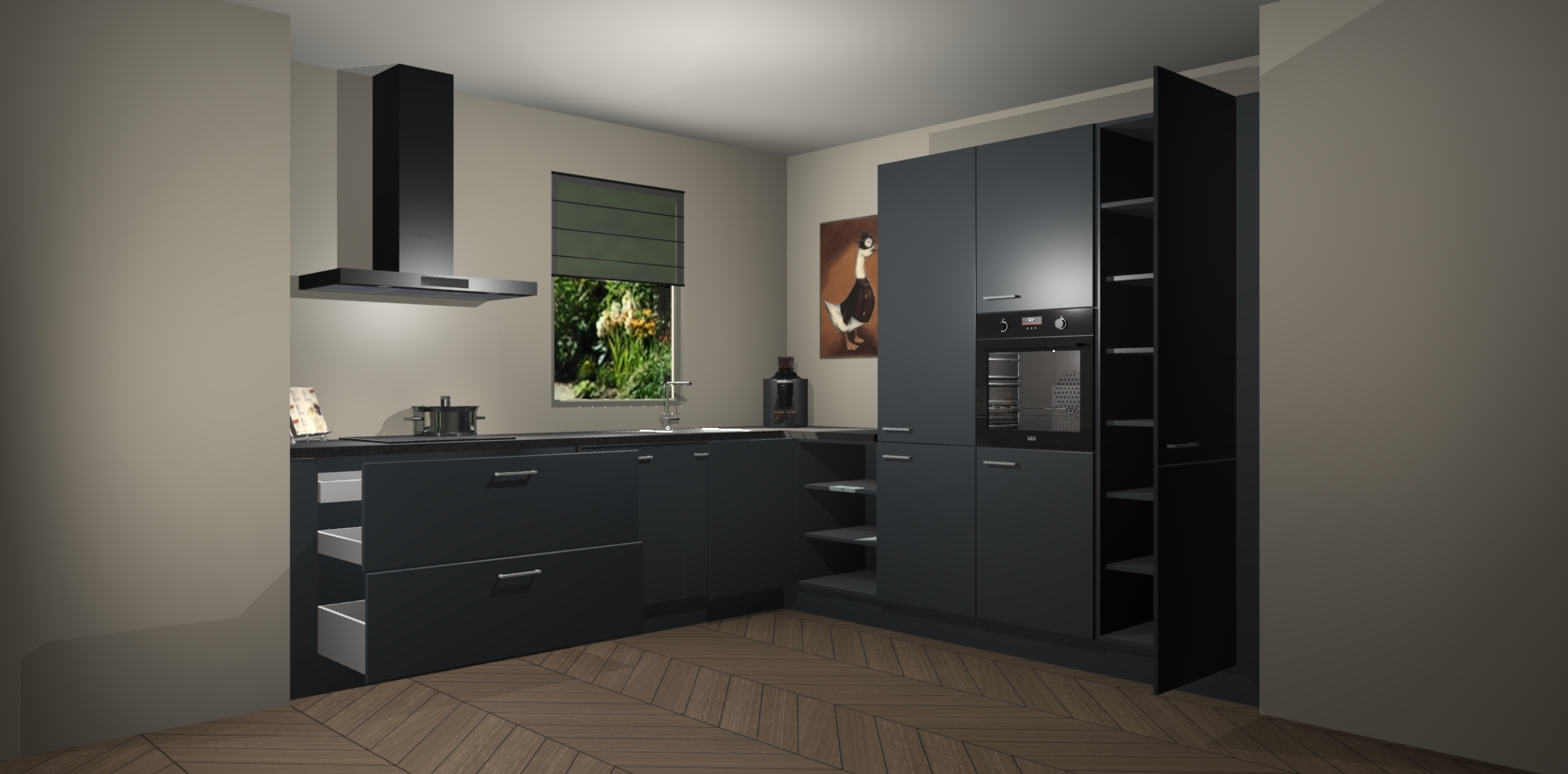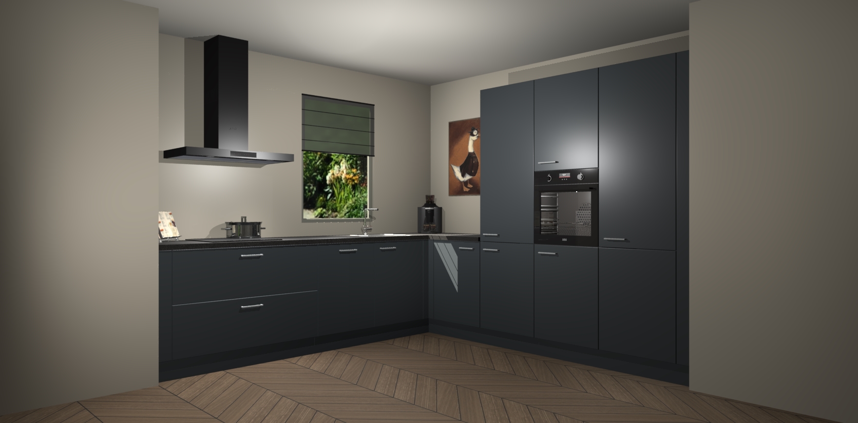 Welkom bij de onyxgrijze keuken Laos. Deze prachtige keuken zal de komende jaren het middelpunt van de belangstelling in uw huis zijn. Uitgerust met vijf inbouwapparaten komt u nooit kookgereedschap tekort. Bovendien geeft de warme houtlook elke ruimte een uitnodigende en tijdloze uitstraling.