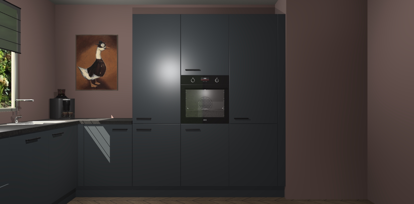 Welkom bij de onyxgrijze keuken Laos. Deze prachtige keuken zal de komende jaren het middelpunt van de belangstelling in uw huis zijn. Uitgerust met vijf inbouwapparaten komt u nooit kookgereedschap tekort. Bovendien geeft de warme houtlook elke ruimte een uitnodigende en tijdloze uitstraling.