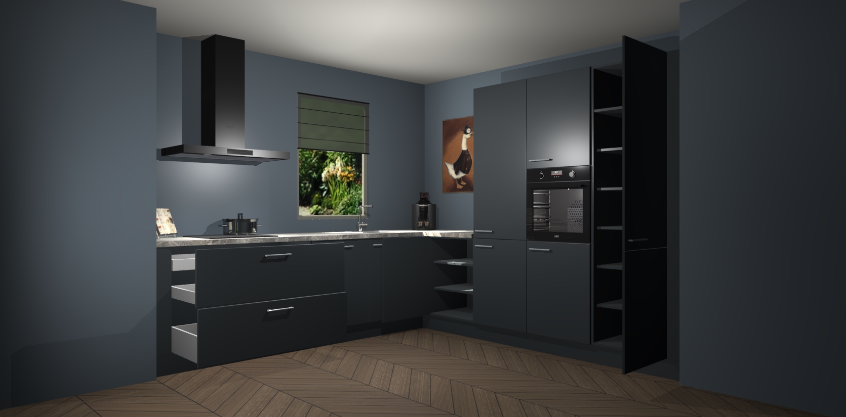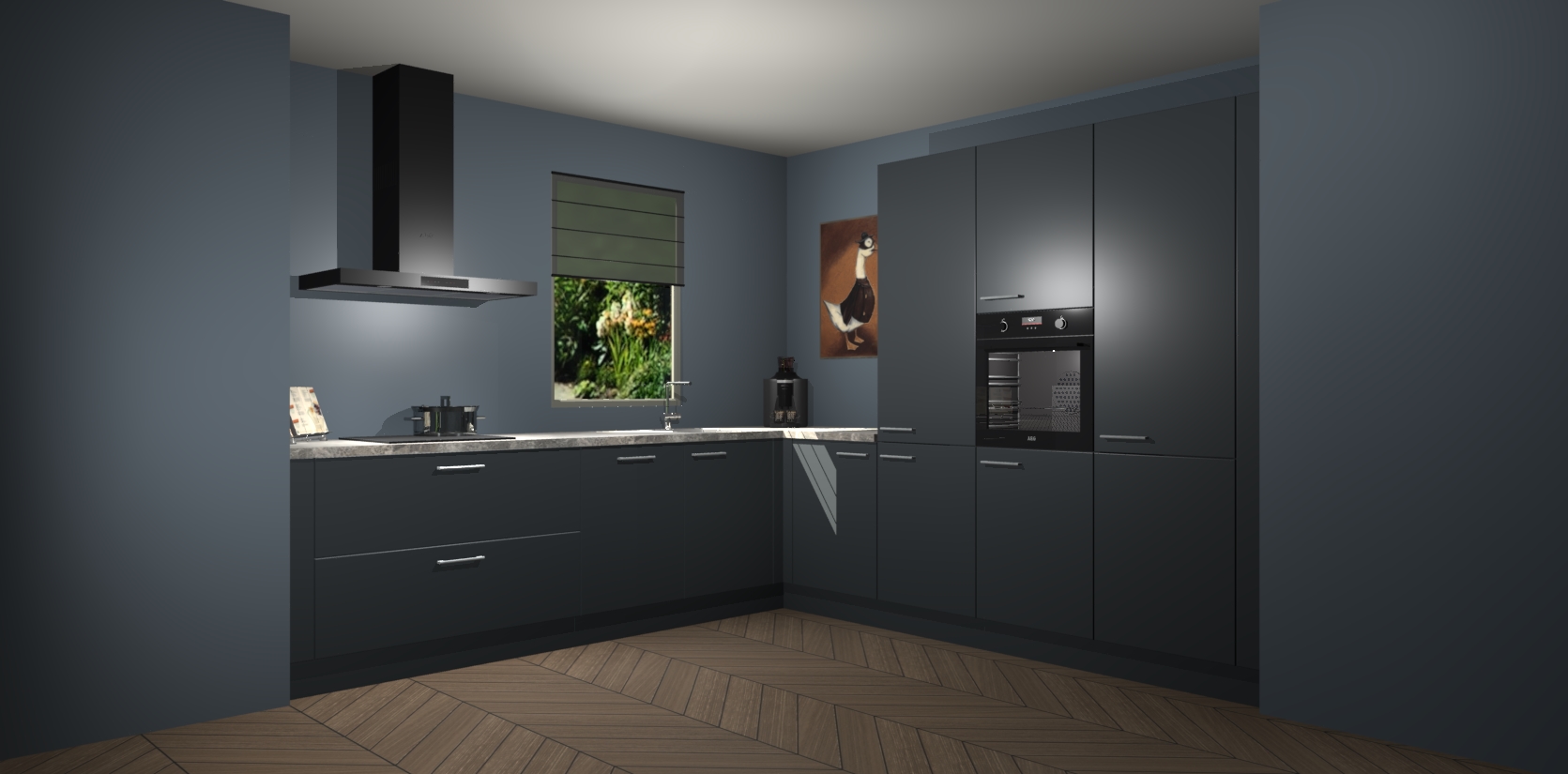 Welkom bij de onyxgrijze keuken Laos. Deze prachtige keuken zal de komende jaren het middelpunt van de belangstelling in uw huis zijn. Uitgerust met vijf inbouwapparaten komt u nooit kookgereedschap tekort. Bovendien geeft de warme houtlook elke ruimte een uitnodigende en tijdloze uitstraling.