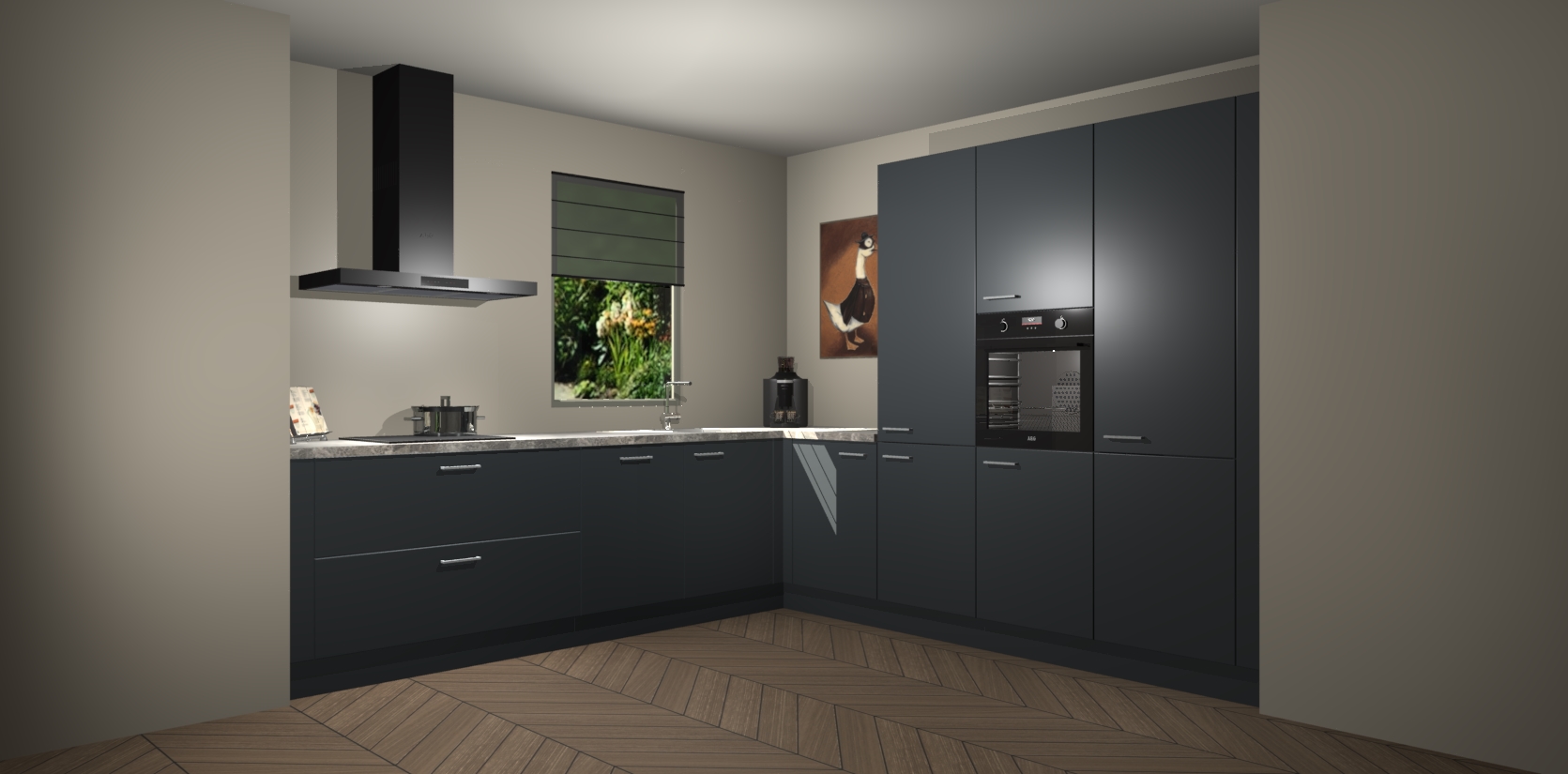 Welkom bij de onyxgrijze keuken Laos. Deze prachtige keuken zal de komende jaren het middelpunt van de belangstelling in uw huis zijn. Uitgerust met vijf inbouwapparaten komt u nooit kookgereedschap tekort. Bovendien geeft de warme houtlook elke ruimte een uitnodigende en tijdloze uitstraling.