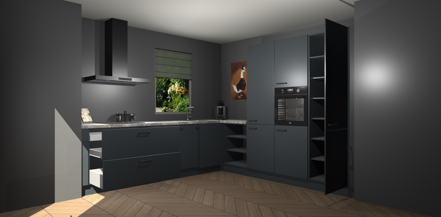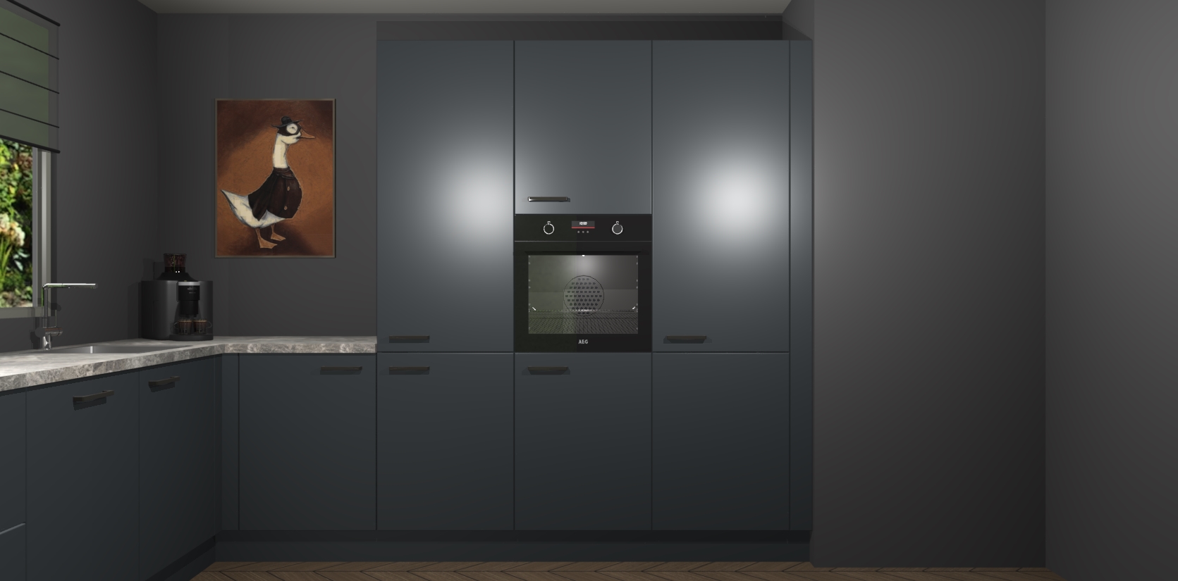Welkom bij de onyxgrijze keuken Laos. Deze prachtige keuken zal de komende jaren het middelpunt van de belangstelling in uw huis zijn. Uitgerust met vijf inbouwapparaten komt u nooit kookgereedschap tekort. Bovendien geeft de warme houtlook elke ruimte een uitnodigende en tijdloze uitstraling.