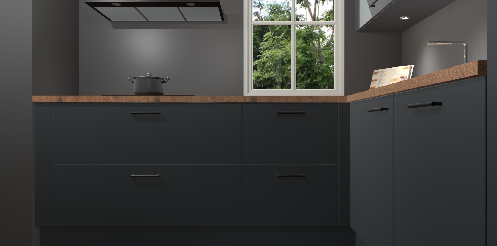 In deze box zijn alle kleuren verzameld van de deuren en werkbladen. Vraag de gratis kleurenbox aan en kijk thuis rustig verder!