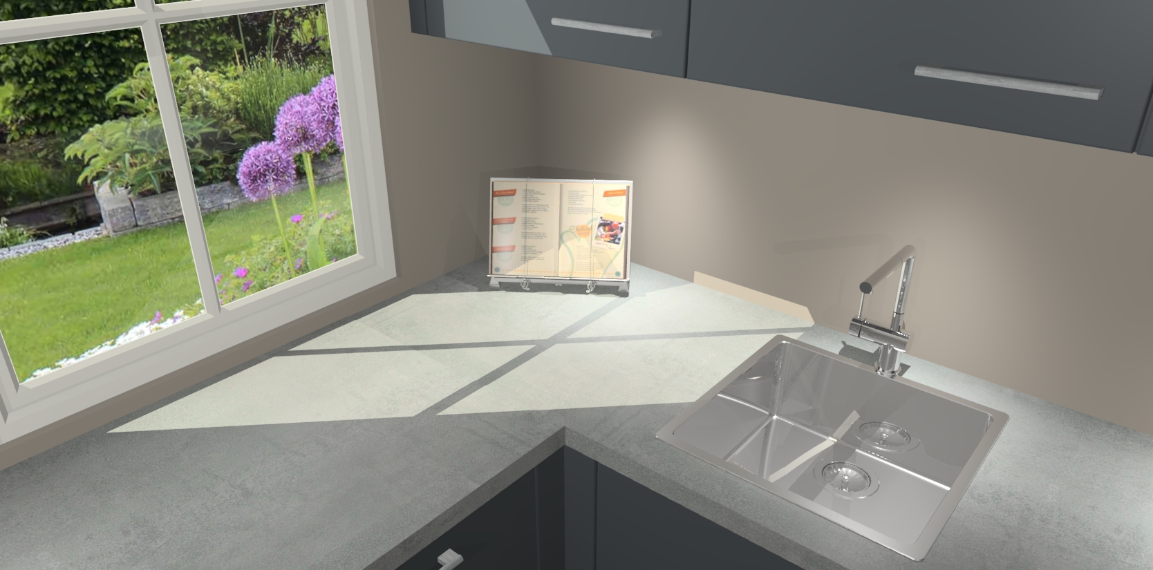 - Bij een hoekwerkblad zijn de hoeken in gevreesd en op maat gemaakt