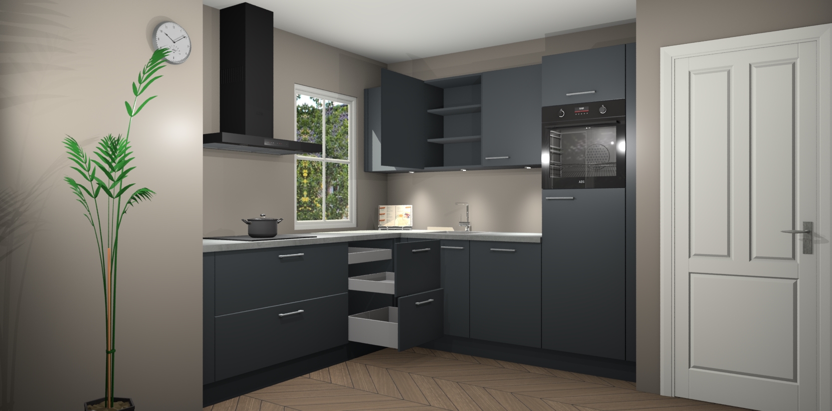 De onyxgrijze keuken Leeds bevat vijf essentiële inbouwapparaten - een oven, inductiekookplaat, afzuigkap, vaatwasser en koelkast - zodat u er na levering meteen in kunt. Voor de slimme kopers die weten dat apparaten vaak het verschil kunnen maken tussen functioneel en luxueus, bieden we eenvoudige upgradeopties naar AEG, van oven naar combimagnetron na bestelling of naar een kookplaat met geïntrigeerde afzuiging. En met onze vaste lage prijs en snelle levering binnen zeven weken vanaf de orderbevestiging hoeft u zich geen zorgen te maken over verborgen kosten of lange levertijden die uw droomkeuken kunnen vertragen.