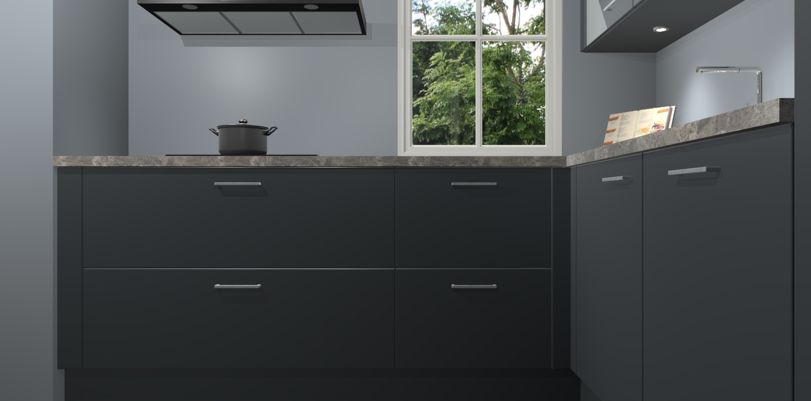 In deze box zijn alle kleuren verzameld van de deuren en werkbladen. Vraag de gratis kleurenbox aan en kijk thuis rustig verder!