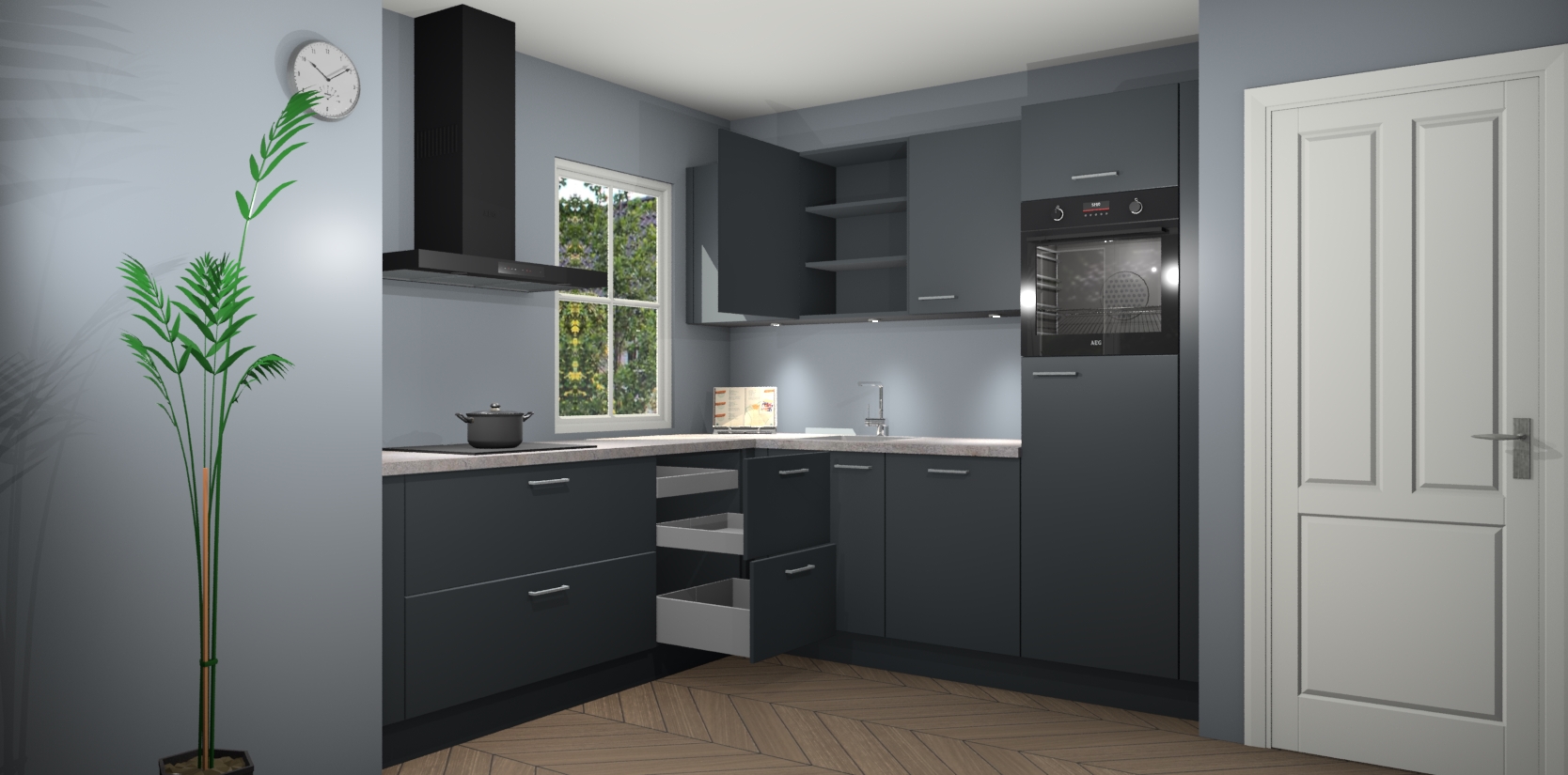 De onyxgrijze keuken Leeds bevat vijf essentiële inbouwapparaten - een oven, inductiekookplaat, afzuigkap, vaatwasser en koelkast - zodat u er na levering meteen in kunt. Voor de slimme kopers die weten dat apparaten vaak het verschil kunnen maken tussen functioneel en luxueus, bieden we eenvoudige upgradeopties naar AEG, van oven naar combimagnetron na bestelling of naar een kookplaat met geïntrigeerde afzuiging. En met onze vaste lage prijs en snelle levering binnen zeven weken vanaf de orderbevestiging hoeft u zich geen zorgen te maken over verborgen kosten of lange levertijden die uw droomkeuken kunnen vertragen.