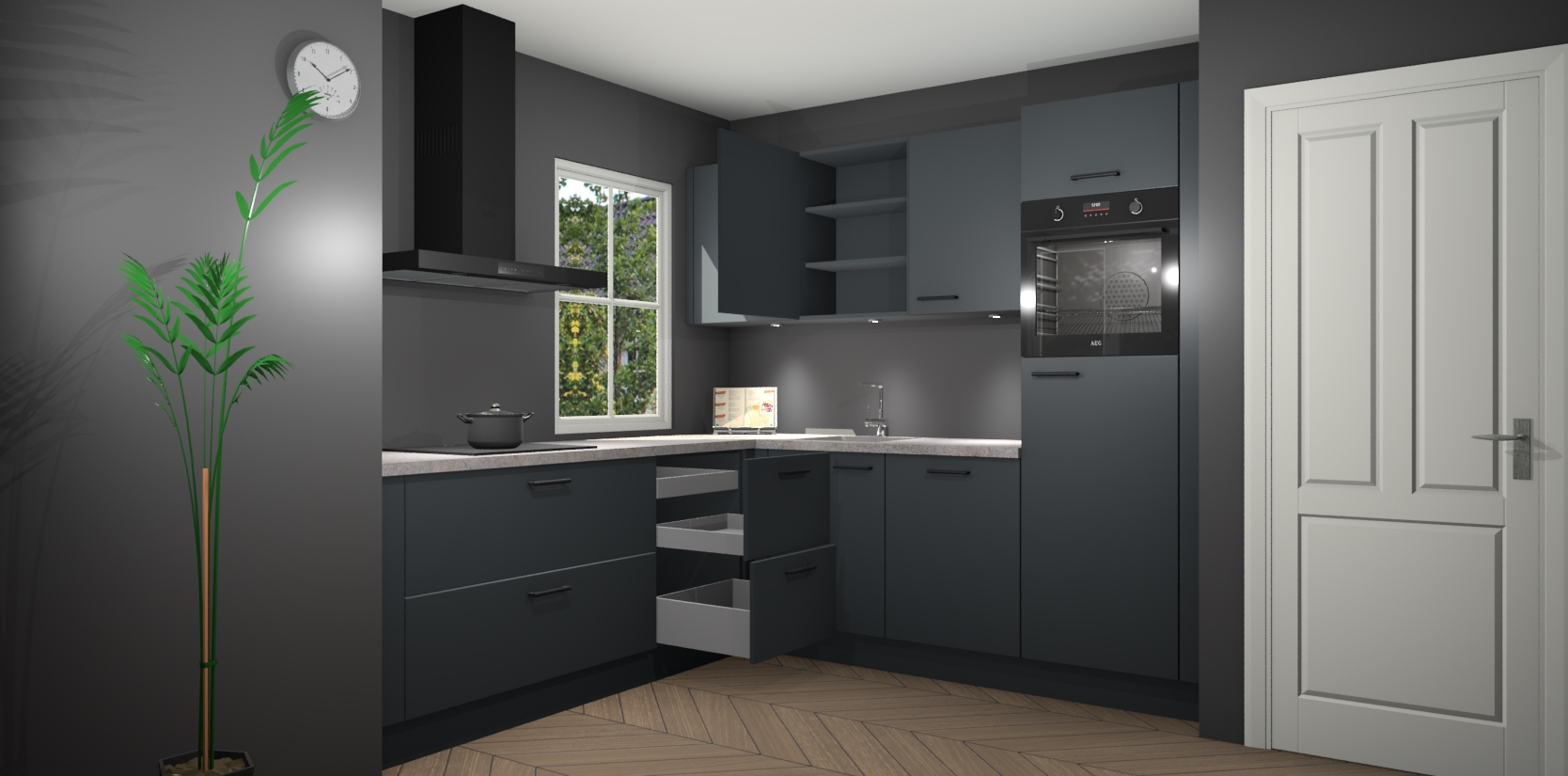 De onyxgrijze keuken Leeds bevat vijf essentiële inbouwapparaten - een oven, inductiekookplaat, afzuigkap, vaatwasser en koelkast - zodat u er na levering meteen in kunt. Voor de slimme kopers die weten dat apparaten vaak het verschil kunnen maken tussen functioneel en luxueus, bieden we eenvoudige upgradeopties naar AEG, van oven naar combimagnetron na bestelling of naar een kookplaat met geïntrigeerde afzuiging. En met onze vaste lage prijs en snelle levering binnen zeven weken vanaf de orderbevestiging hoeft u zich geen zorgen te maken over verborgen kosten of lange levertijden die uw droomkeuken kunnen vertragen.