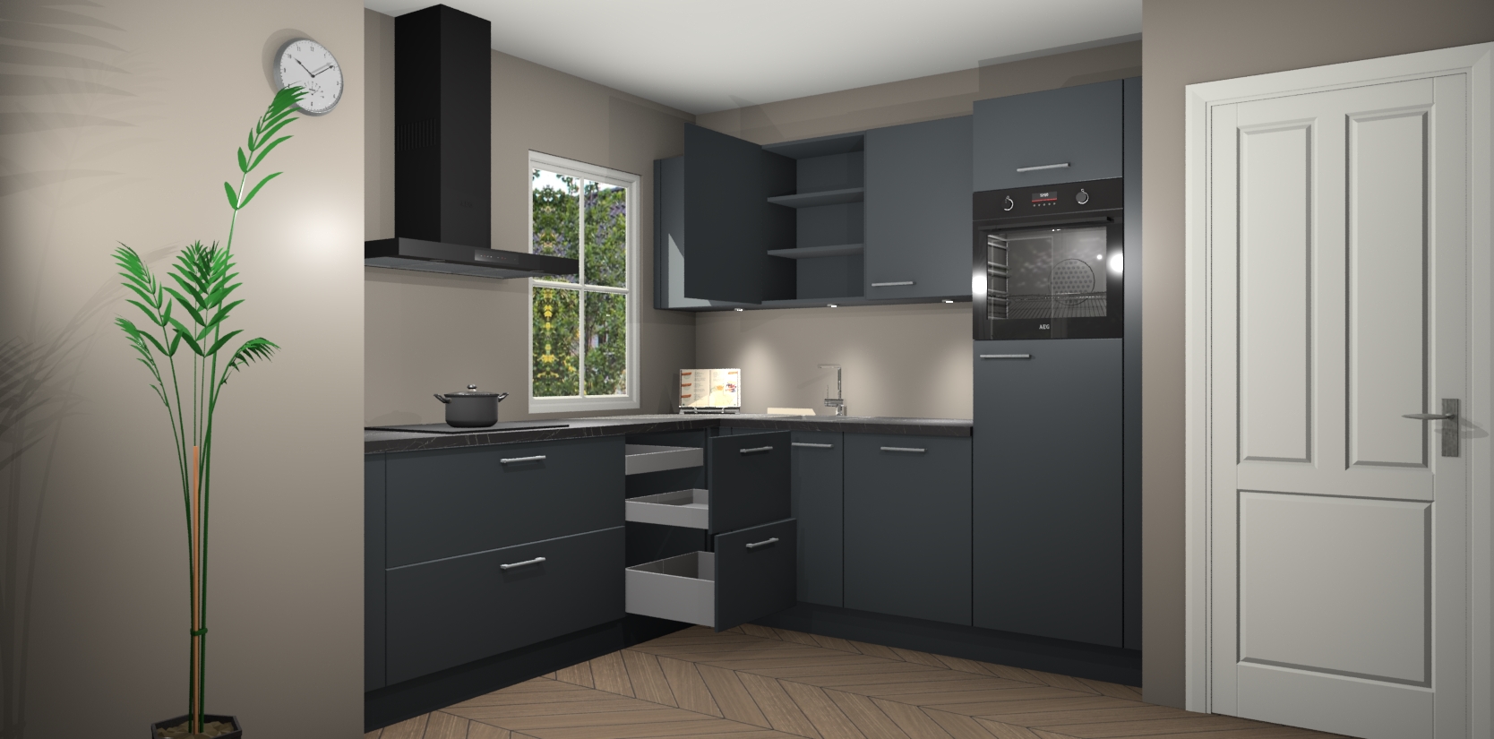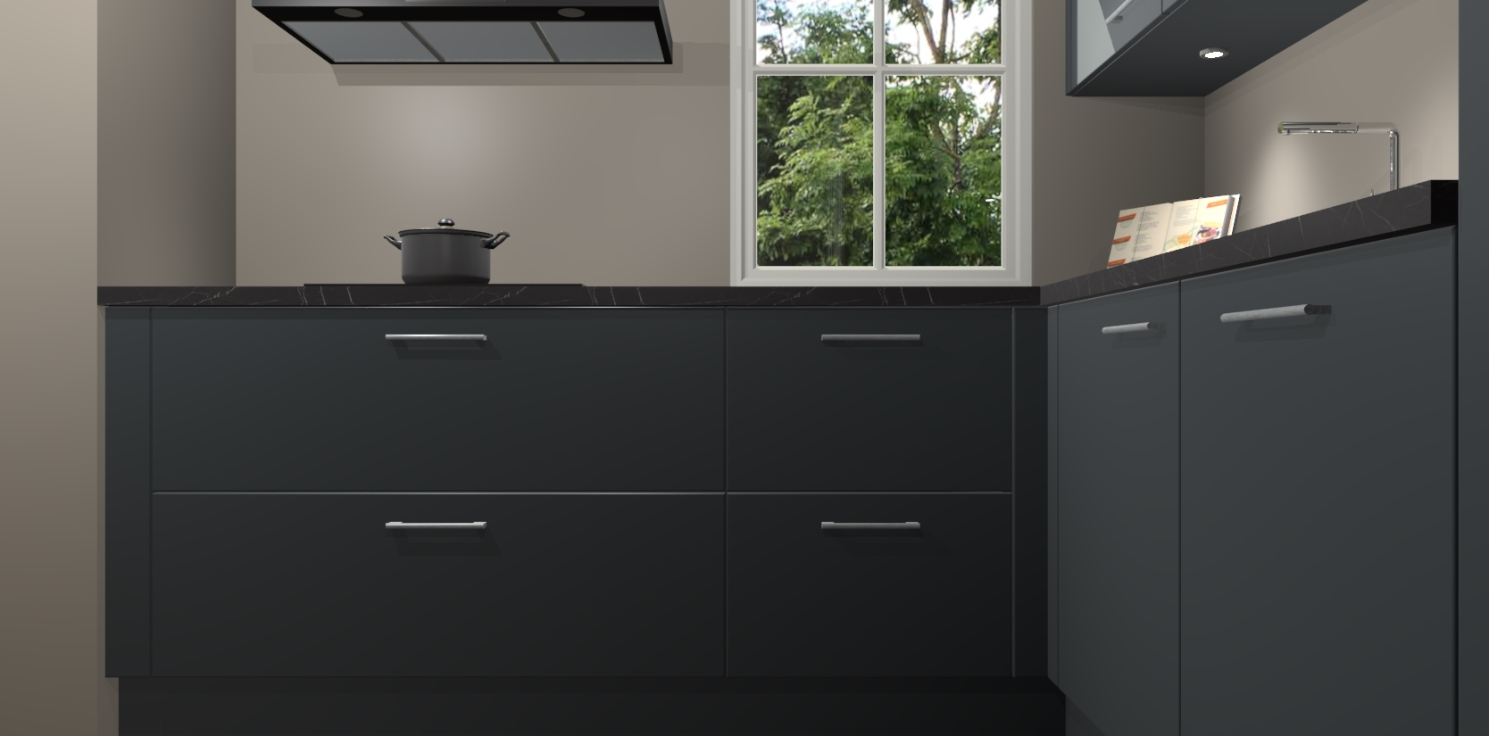 De onyxgrijze keuken Leeds bevat vijf essentiële inbouwapparaten - een oven, inductiekookplaat, afzuigkap, vaatwasser en koelkast - zodat u er na levering meteen in kunt. Voor de slimme kopers die weten dat apparaten vaak het verschil kunnen maken tussen functioneel en luxueus, bieden we eenvoudige upgradeopties naar AEG, van oven naar combimagnetron na bestelling of naar een kookplaat met geïntrigeerde afzuiging. En met onze vaste lage prijs en snelle levering binnen zeven weken vanaf de orderbevestiging hoeft u zich geen zorgen te maken over verborgen kosten of lange levertijden die uw droomkeuken kunnen vertragen.