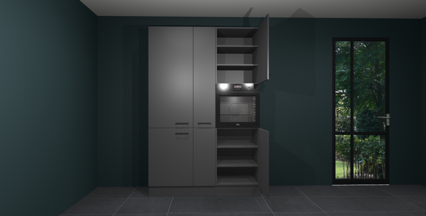 Met een modern, tijdloos design en ruime opslagruimte, zult u zich in no-time thuis voelen in uw nieuwe keuken. Uw leven wordt eenvoudiger met de soft-close deuren die voor het ultieme stille comfort zorgen - geen geluid dat u stoort terwijl u kookt. Ook is de keuken voorzien van 5 ingebouwde apparaten: een oven, inductie kookplaat, afzuigkap, vaatwasser en koelkast. Deze kunnen gemakkelijk na bestelling worden bijgewerkt naar AEG - waardoor uw luxe ervaring compleet is.