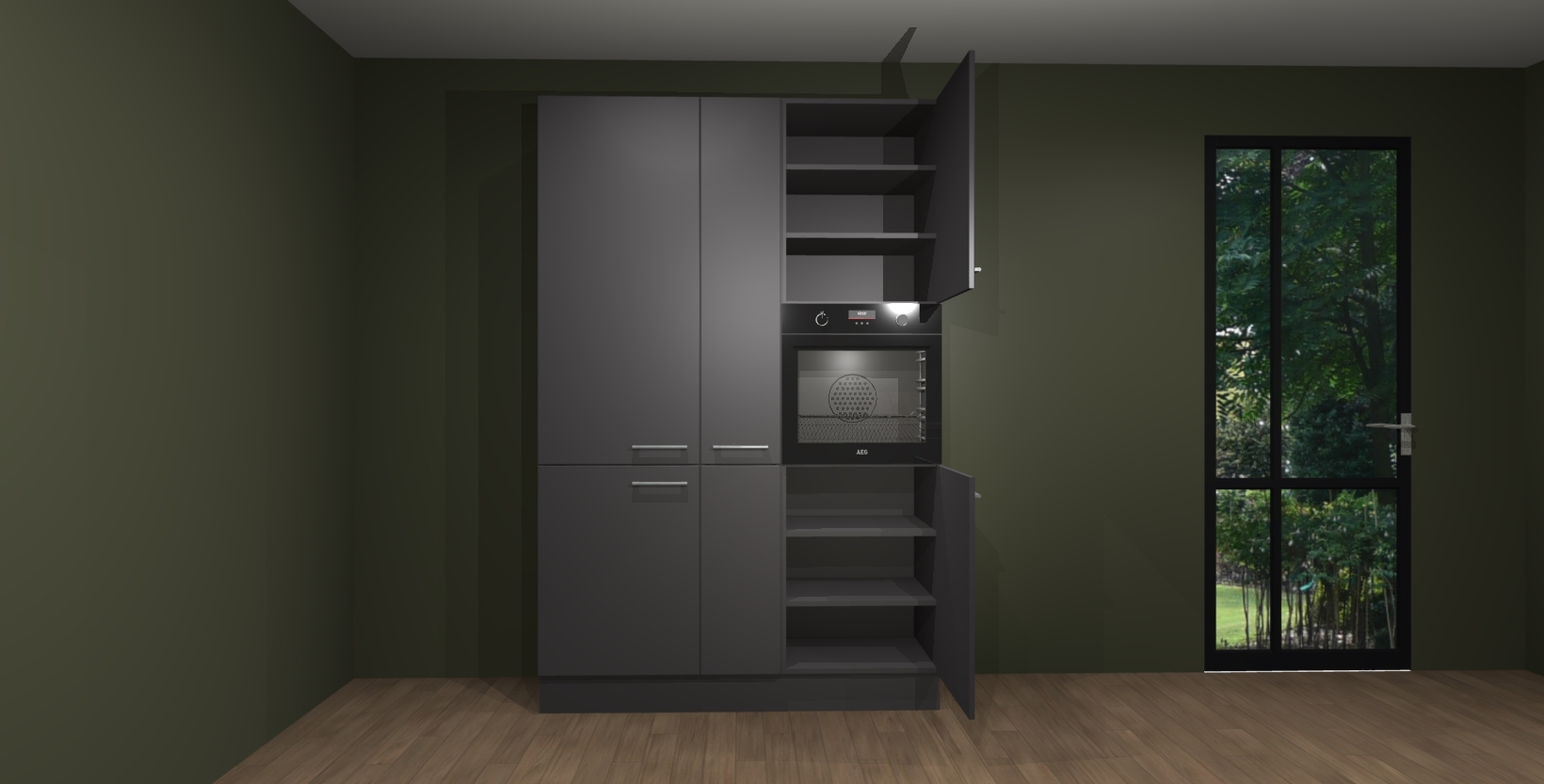 Met een modern, tijdloos design en ruime opslagruimte, zult u zich in no-time thuis voelen in uw nieuwe keuken. Uw leven wordt eenvoudiger met de soft-close deuren die voor het ultieme stille comfort zorgen - geen geluid dat u stoort terwijl u kookt. Ook is de keuken voorzien van 5 ingebouwde apparaten: een oven, inductie kookplaat, afzuigkap, vaatwasser en koelkast. Deze kunnen gemakkelijk na bestelling worden bijgewerkt naar AEG - waardoor uw luxe ervaring compleet is.